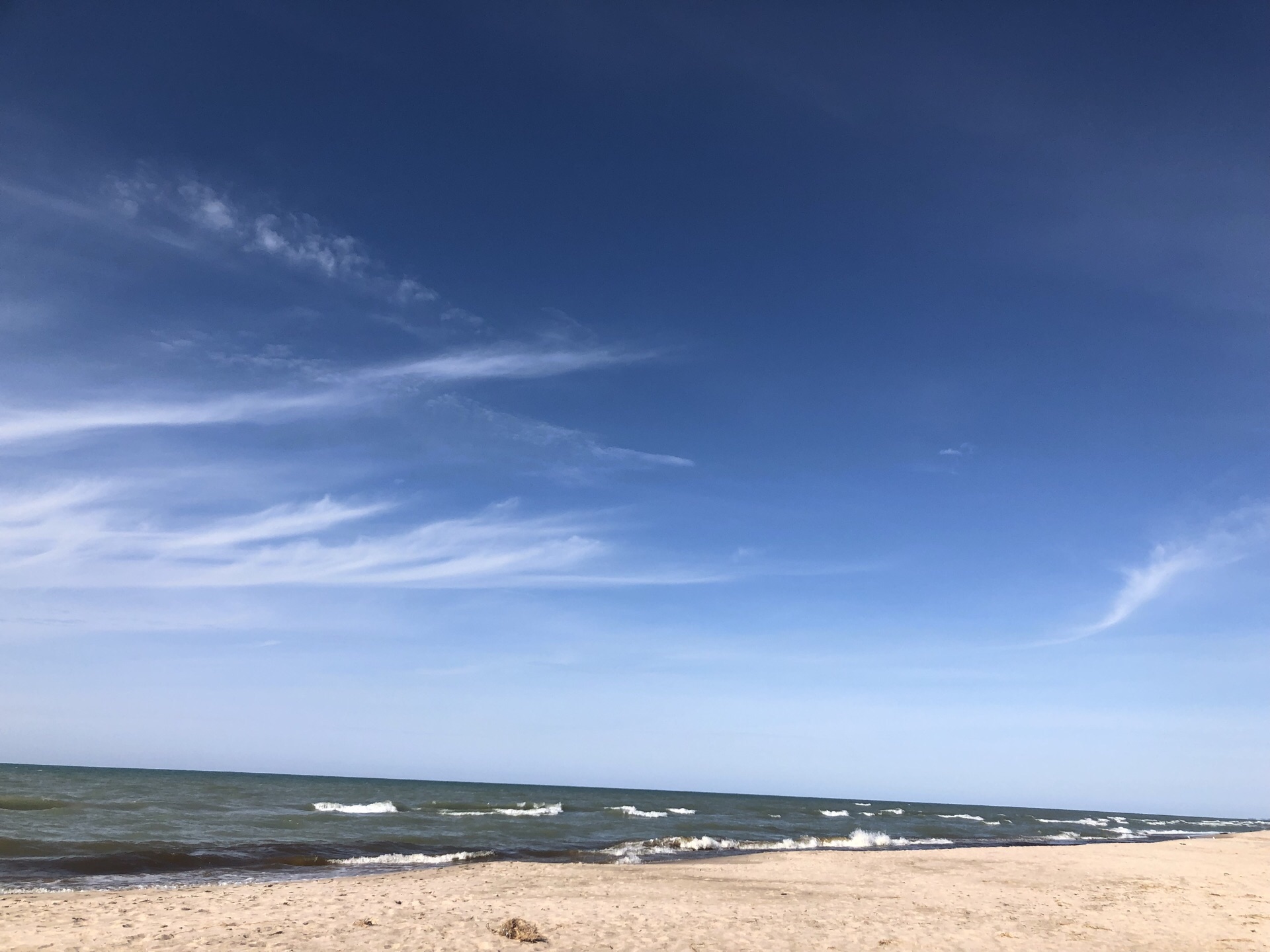 风景超级美的,风也是蛮大的,记得穿外套吧。他们说对面就是芝加哥啦,从这里看就像是远方的一个岛,很神秘。沙子很细,可以在沙滩上散步。这里还有露营区,可以开房车来这里露营和烧烤,很适合周末带着家人到这里来玩。来这里是很不错的选择哦。