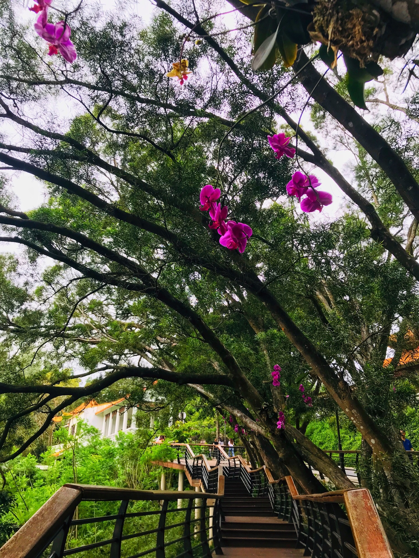 我一而再而四地来到深圳仙湖植物园,来到弘法寺。从我遇见时,己被迷住了,超出对我所在城市植物园的喜爱。 仙湖植物园十五元的门票价格物超所值。我可以呆上一天,来回漫步到弘法寺,沿途的蝴蝶兰一路伴随。途经桫椤湖、人间天堂、蝶谷幽兰、龙尊塔,前行到弘法寺拜佛。在弘法寺吃完斋饭,经过多肉植物区、盆景园,我来到仙湖边,眺望梧桐山,仙湖湖光潋滟水波荡漾,一路闻着花香鸟语,又回到景区大门。