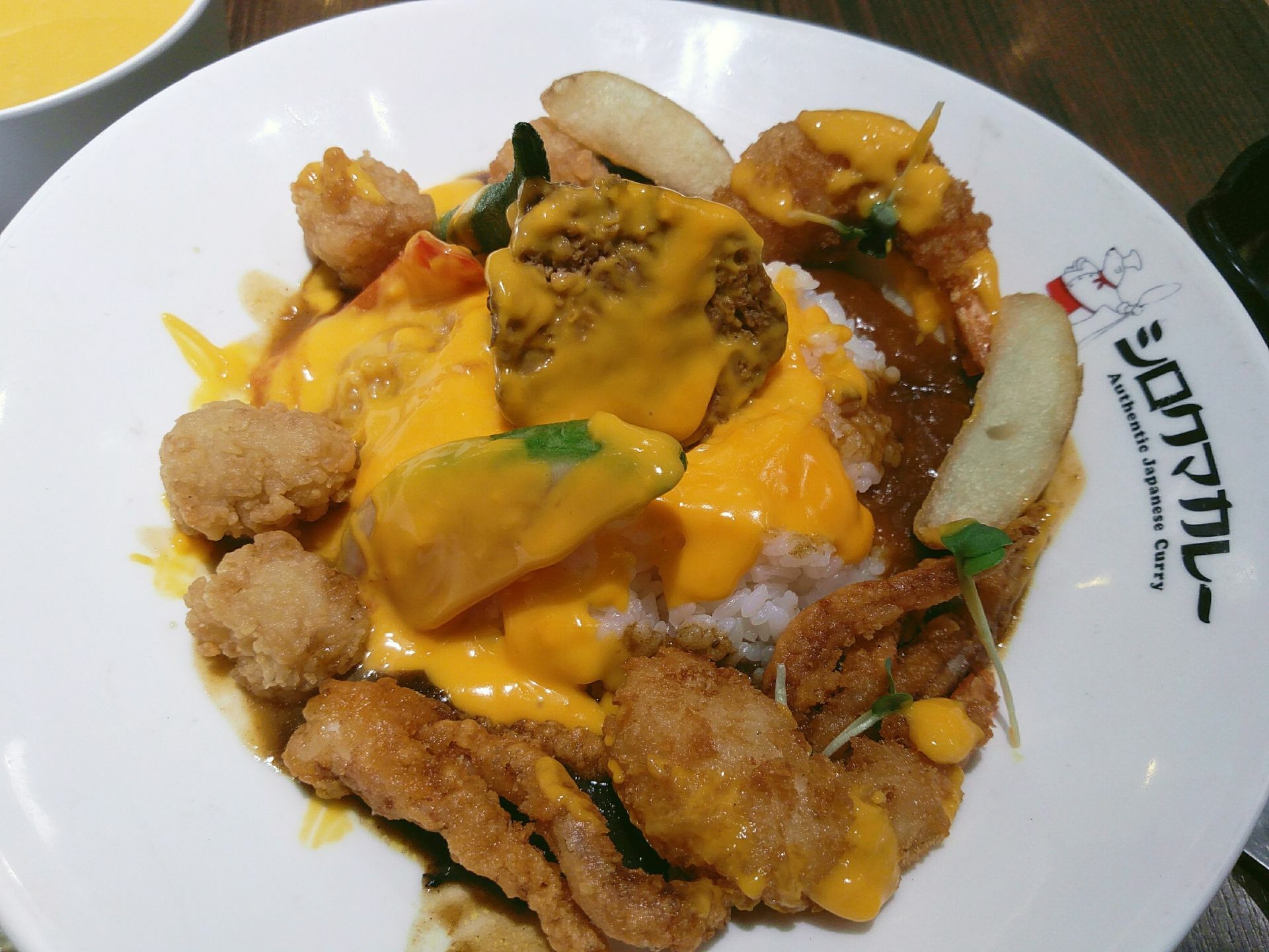 白熊咖喱,也是很久不去了,正好在陆家嘴看复联4,自然就过去打打卡咯,环境还是那么紧凑整洁。不过去的早没什么人到是很自由。 新品彩虹咖喱自然要拔草咯 一次让你品位到她家招牌的4中不同风味咖喱。再加上车达芝士酱和不同色彩的时蔬,整个上来就是个7彩拼盘啊,颜值还是很不错的哦 不仅有外观,内涵更是妥妥的。Q弹大虾搭配肉丸子(很好奇日式店里肉丸子怎么能做的那么好吃)肉食者最爱;秋葵+心里美萝卜+彩椒可是颜值营养担当了哦!