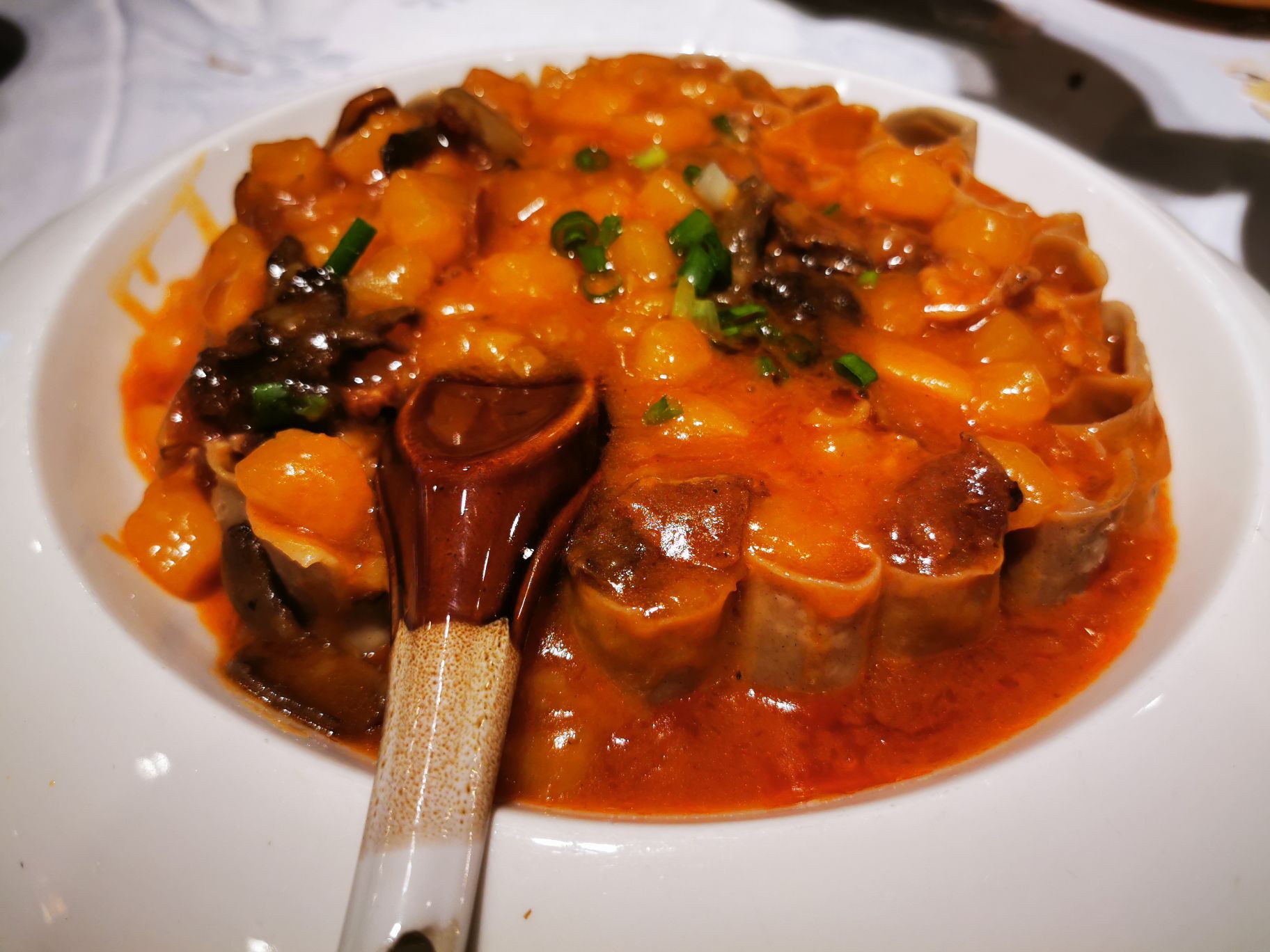 很西北的餐厅 餐厅分为吃地锅和吃炒菜,进去之后服务员会先问是吃地锅还是吃炒菜,因为取号会不同。等了很久,地锅都没有叫号,所以吃了炒菜。 菜品的种类还是很多的,从烤串到烤馍,很是丰富。没道菜品都很不错。 |烤包子^很少吃到的烤包子,外皮很脆,包子的个头也不小,适合两人分享。 |羊肉台蘑浇莜面^莜面的份量很多,上面虽然没有太多羊肉,但是羊肉味还是很浓郁。