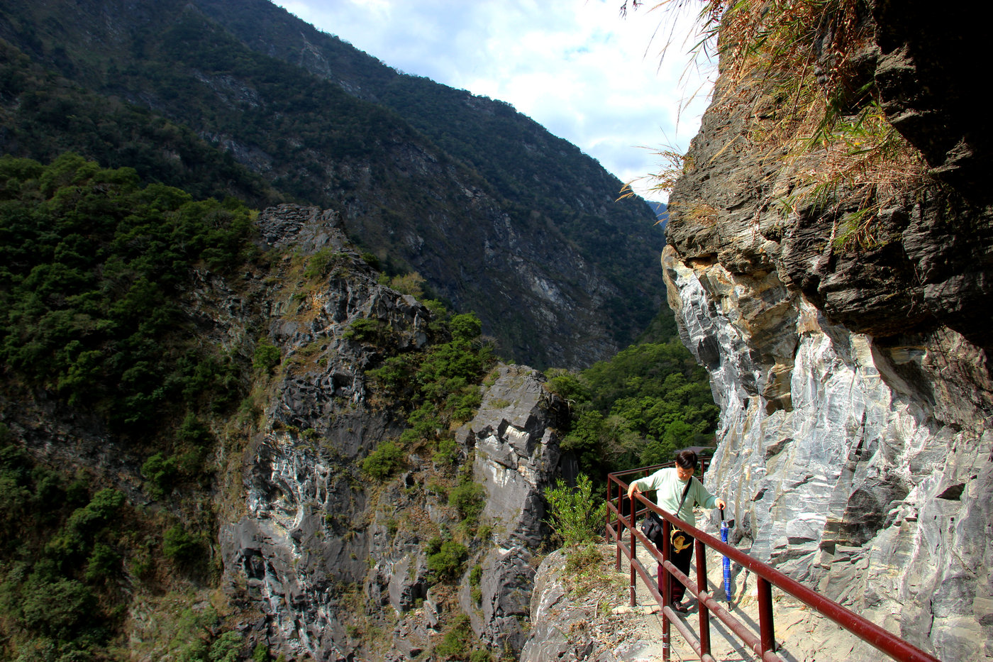 10点左右开始今天第三条步道-绿水步道的行走。这条步道约2公里长度,无需往返,单程约1小时。步道的开始一段和普通登山道差不多,但可看到当地特有的一些植物,当穿过一个长约30米的隧洞后,眼前豁然开朗,中横公路就在脚下,一侧的河谷中乱石林立,奔流的立雾溪水,仿佛在诉说着,二百多年前,太鲁阁族人在此定居并建立部落和开创太鲁阁历史文化的故事。