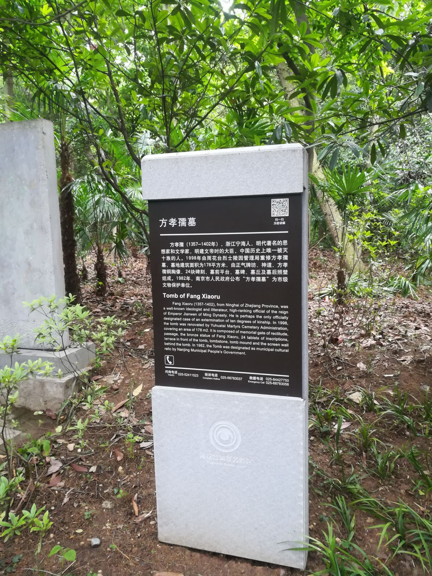网友2019-05-04明代历史上的著名人物,因为反对朱棣称帝被诛十族,也是古代读书人的气节代表,他的墓也在雨花台区域...方孝孺,明代历史上的著名人物,因为反对朱棣称帝被诛十族,也是古代读书人的气节代表,他的墓也在雨花台区域内,当然也是近些年新修建的!