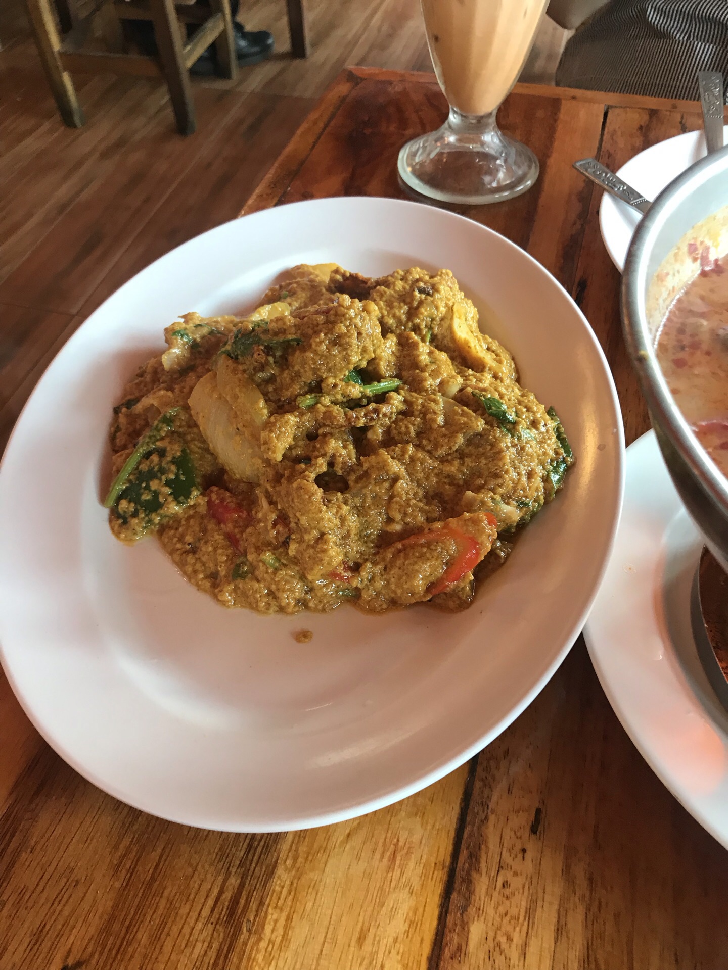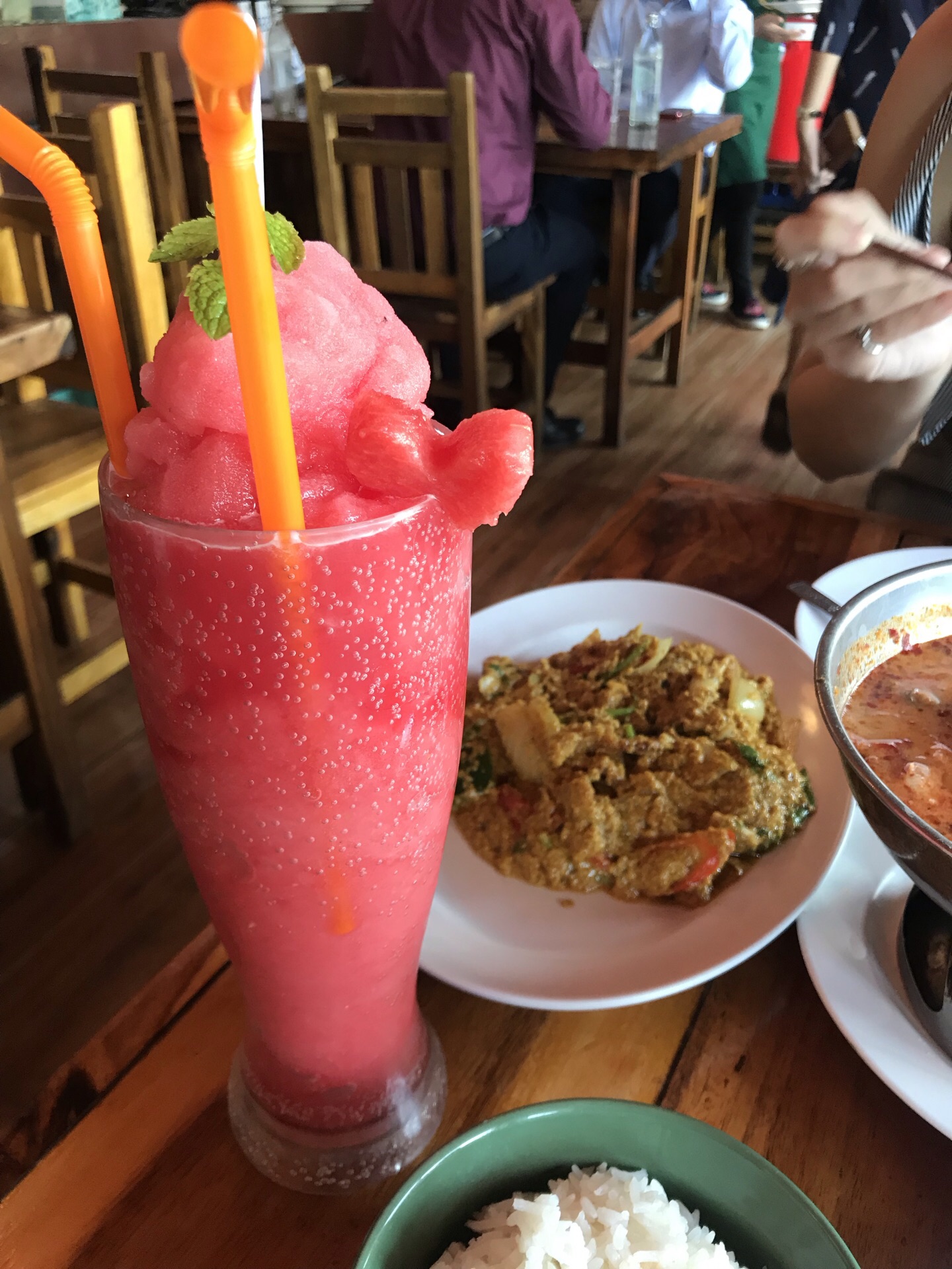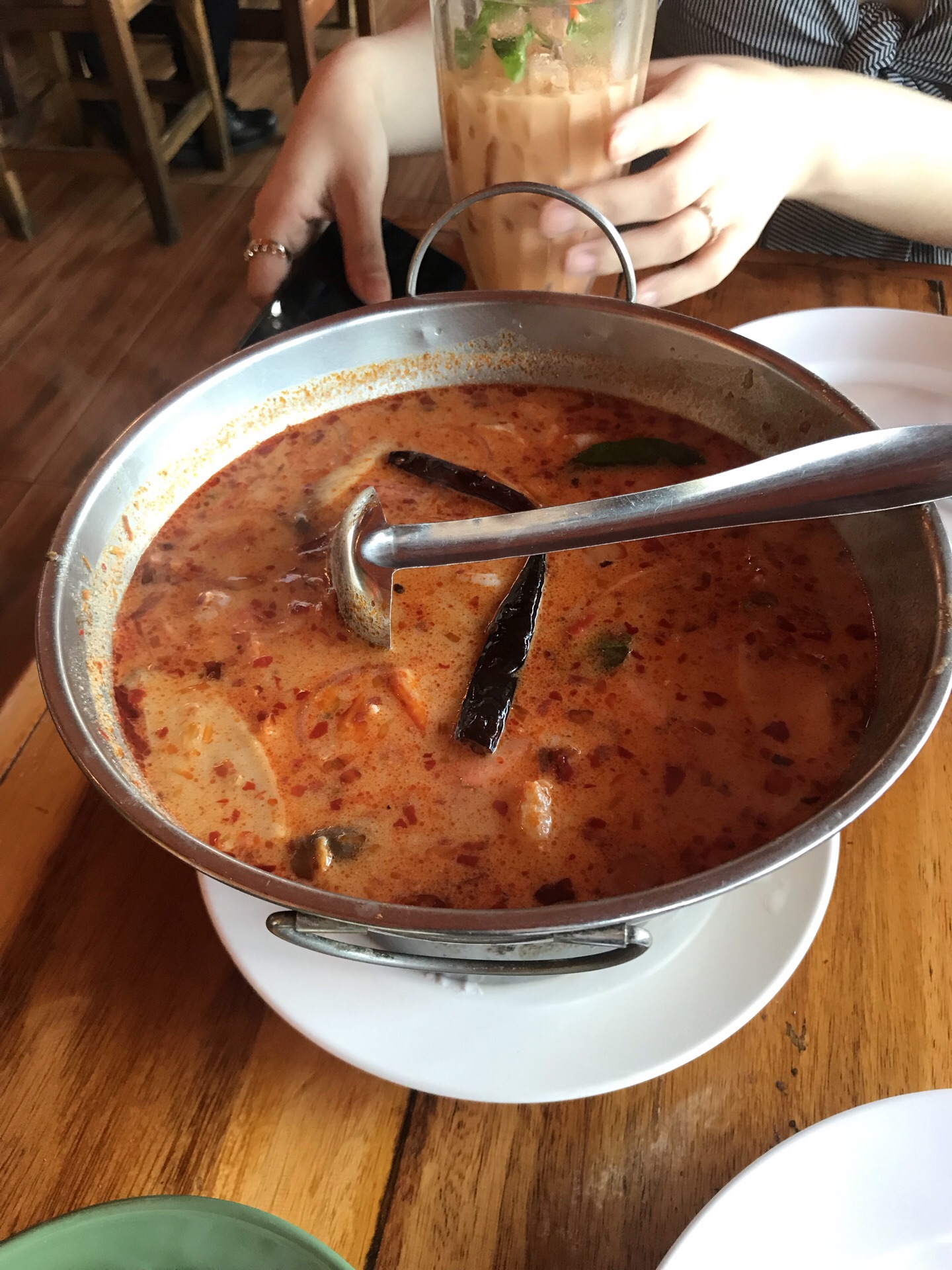 一家非常好吃实惠的泰国菜,就在住的酒店的楼下,很方便一家非常好吃实惠的泰国菜,就在住的酒店的楼下,很方便。店一共有三层,所以几乎去了就有座位,店内服务员态度也很好。菜品的味道也没得说了,连续去吃了两天,咖喱蟹和冬阴功汤都很值得推荐!