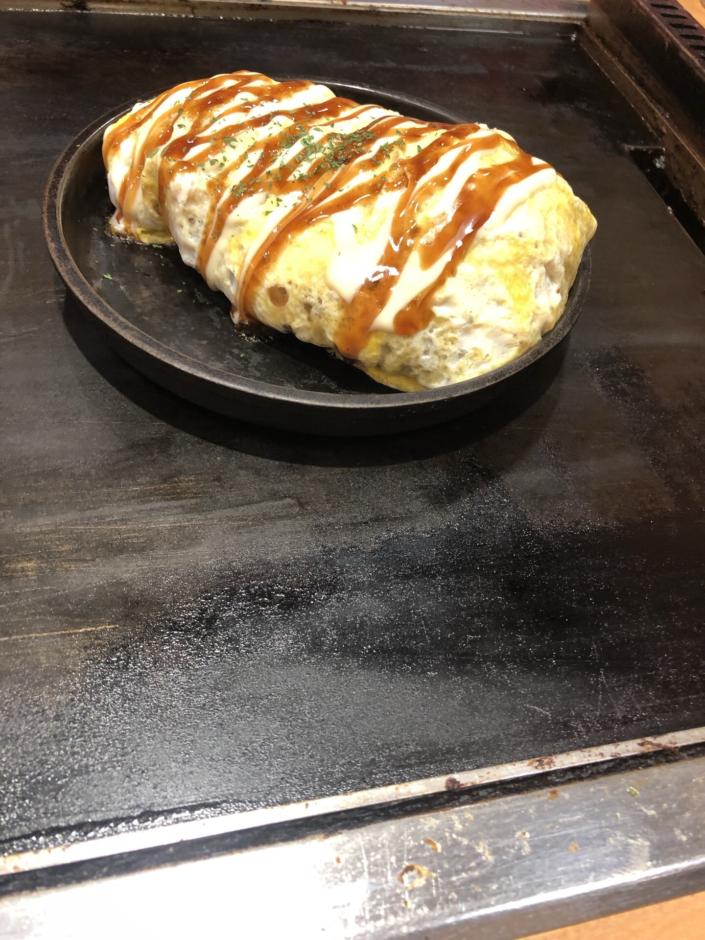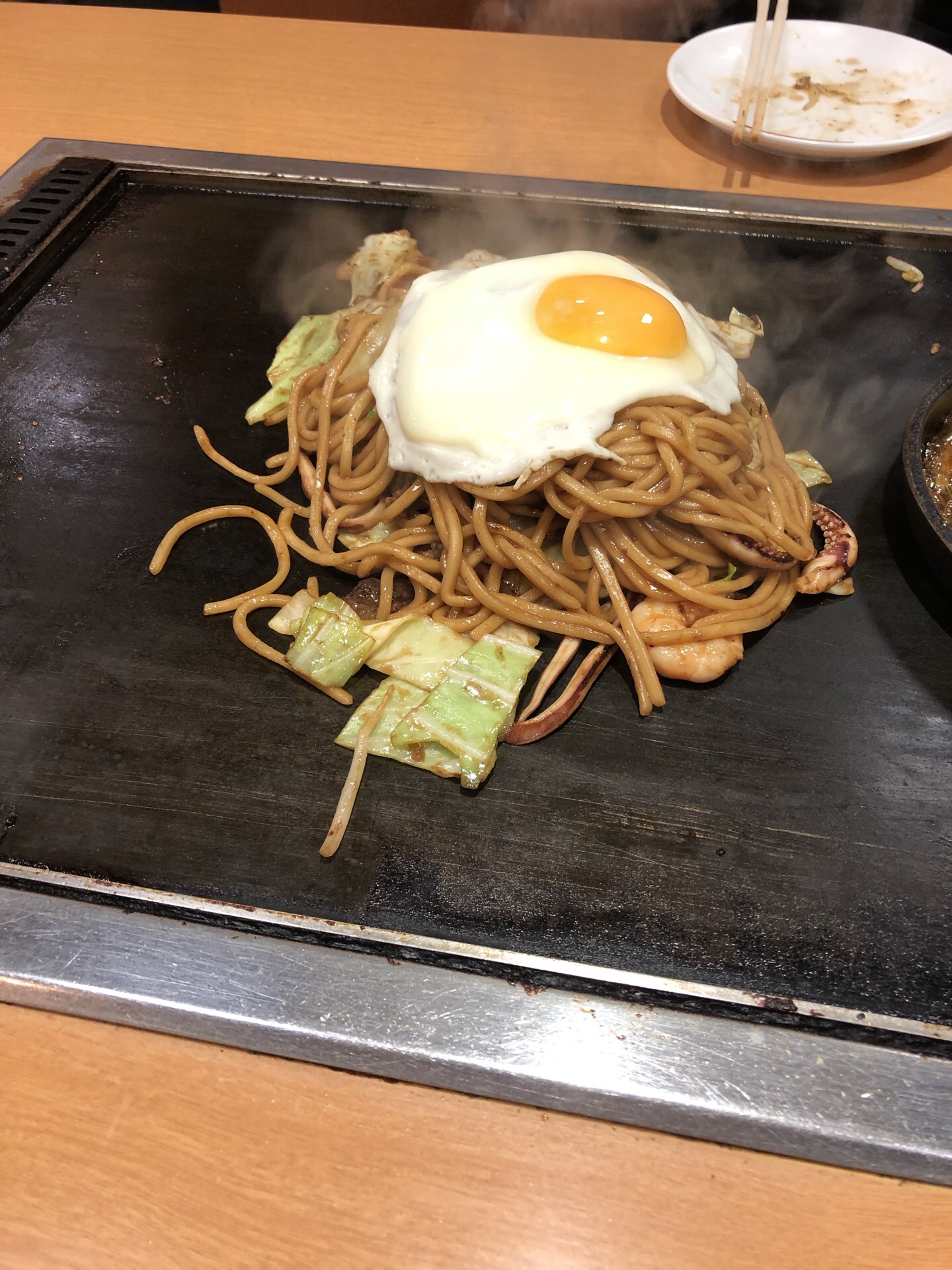 其实是看到它们家的大阪烧很出名才来的。之后发现是一家连锁店,种类也不限于大阪烧,铁板炒面什么的都有。餐桌上一块铁板,厨师烧好了放在铁板上保持热度。一份两人量的面加上一个烧蛋什么的,两个人吃得超级饱。推荐饭后周围百货逛一逛。