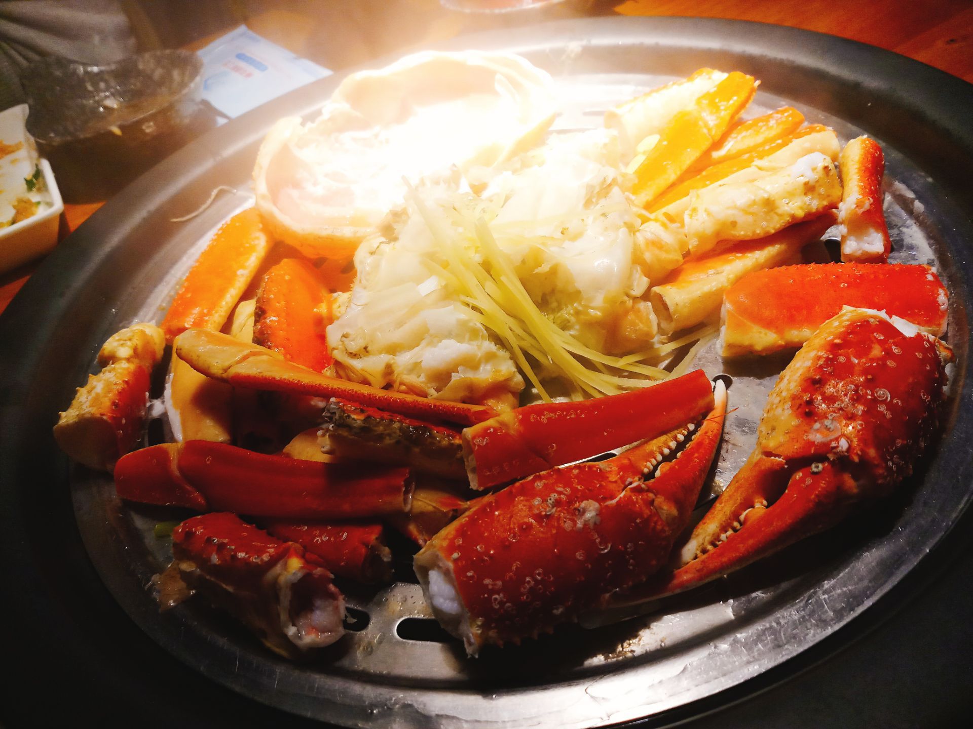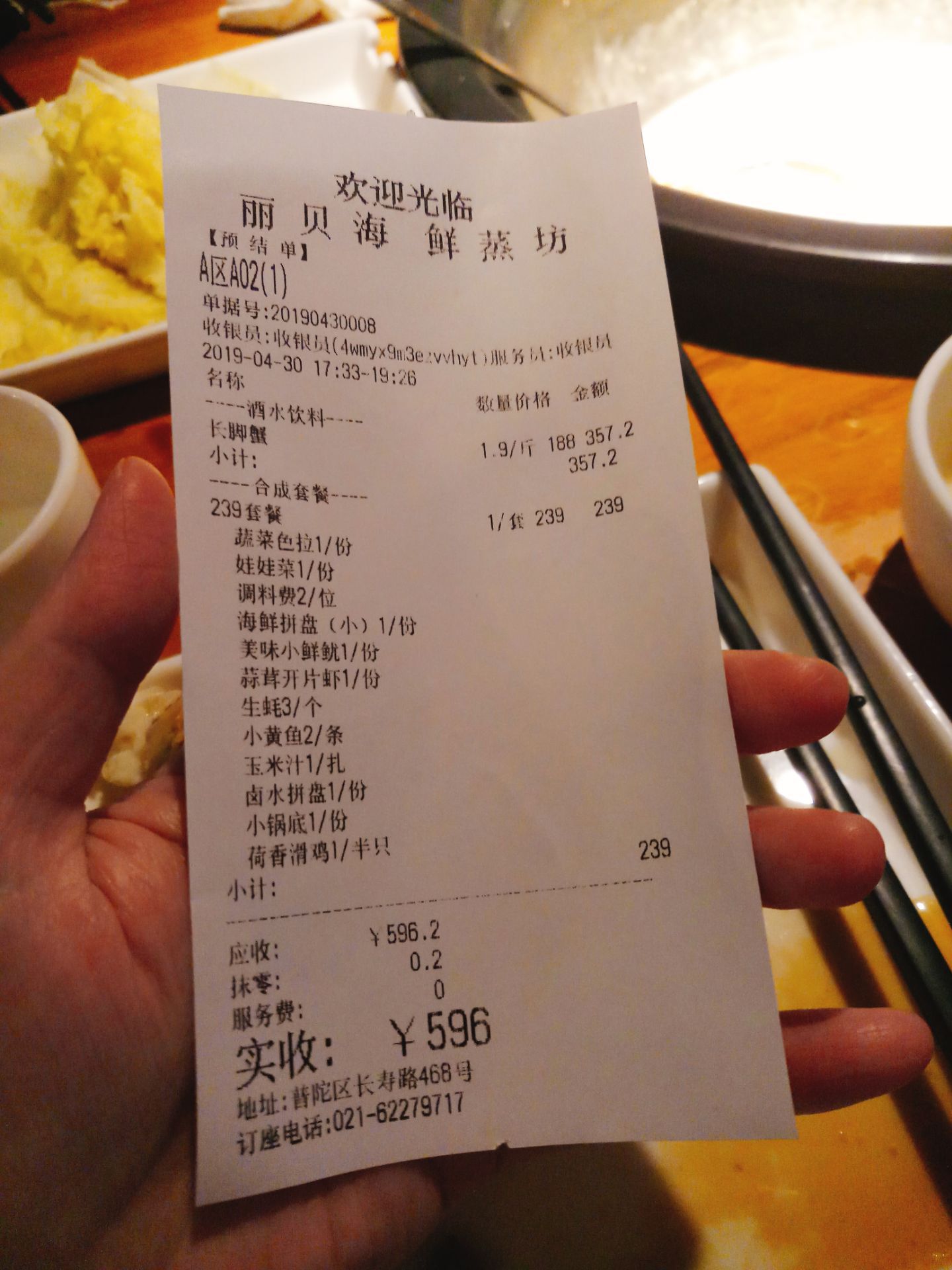 阿姨带我飞 长脚蟹吃起来 特价188一斤 找了个1.9斤 吃得爽歪歪 再买个套餐打打底 这里的海鲜新鲜看得见 自己选自己挑了 喜欢贝壳拼盘 没有沙子真愉快 荷叶蒸鸡很嫩口 几筷子消灭 蒜蓉开背虾也好吃的 玉米汁有点难喝 咸口的。。。 最后的干贝土鸡粥好美味 就是稀薄了点 服务还蛮好的 店家环境不错 面积大