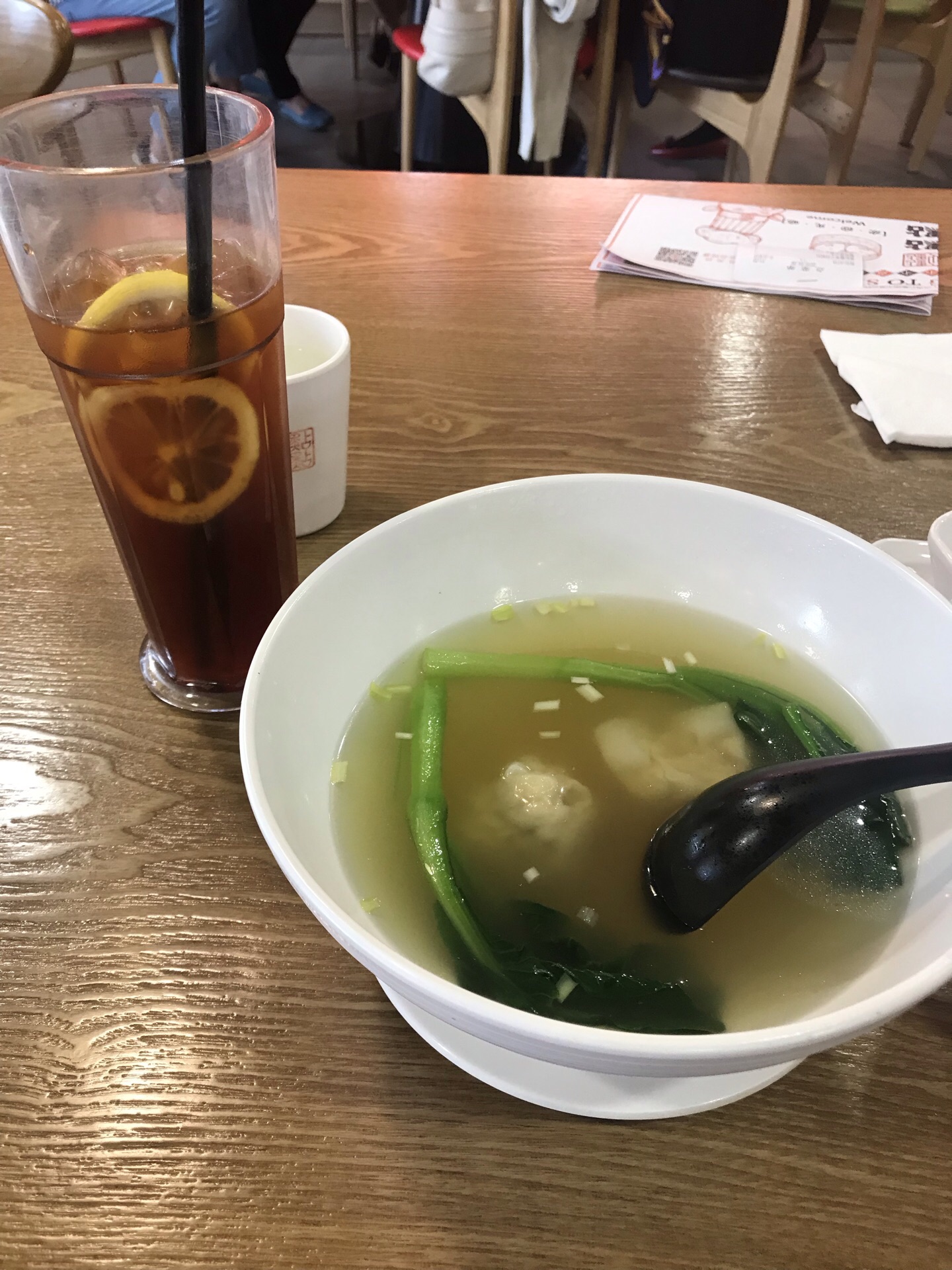 去过香港的点点心,看到上海也开了就来试试。工作日的中午已经坐满了人,还好来的早立马就有座位。因为一个人出来办事了,点了鲜虾云吞,料足一口咬下去满满的虾,味道还行。黑松露带子凤眼饺听名字就想试试,黑松露是好东西,口感还不错,柠檬茶不够浓,服务员很多,而且手脚麻利,态度很好,买单是自己拿好账单去柜台结账的。