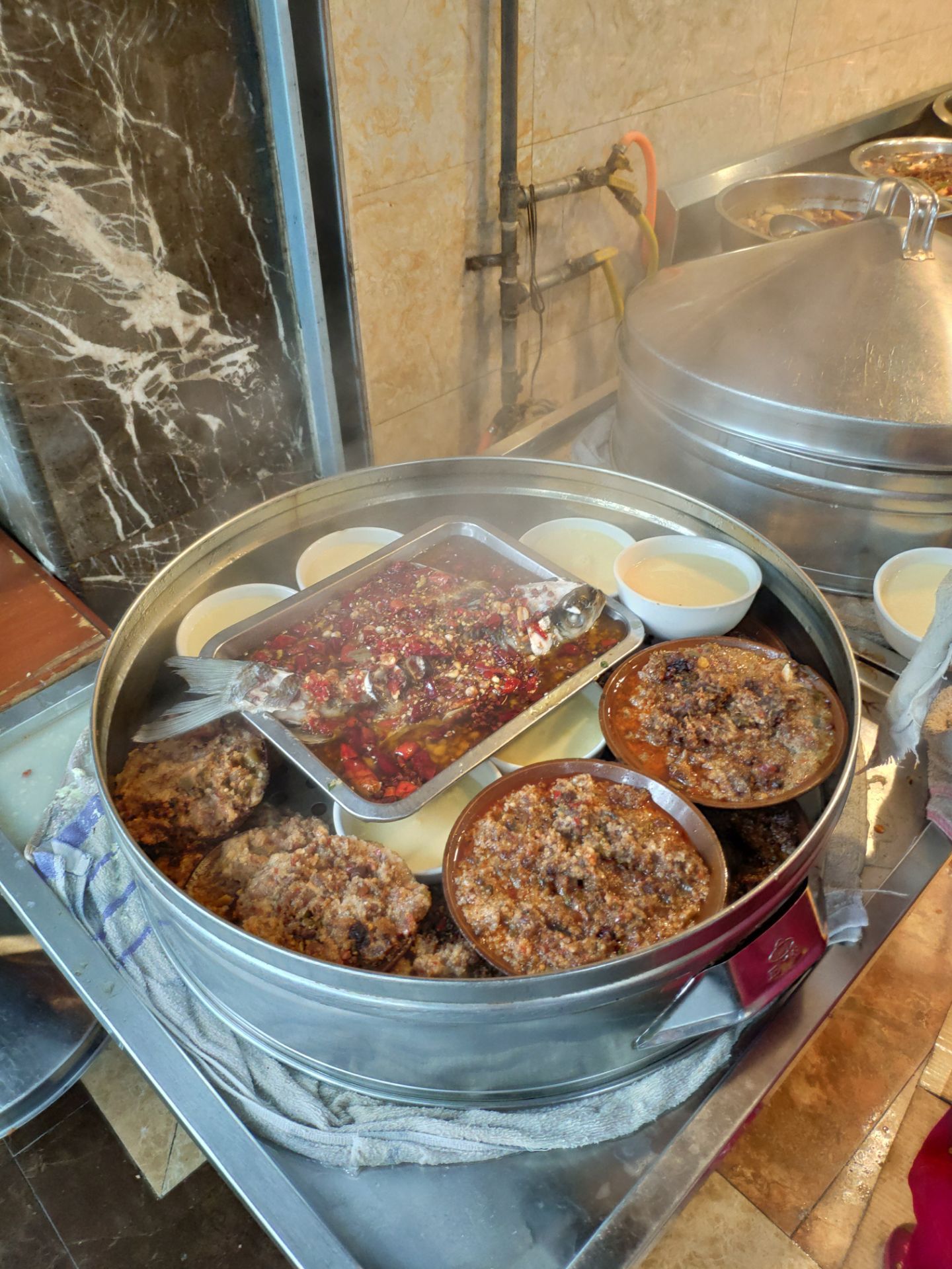 两个人吃了50多,性价比还可以。餐馆在一条小路上,旁边还有几家小吃,有叶儿粑和牛肉豆花等等