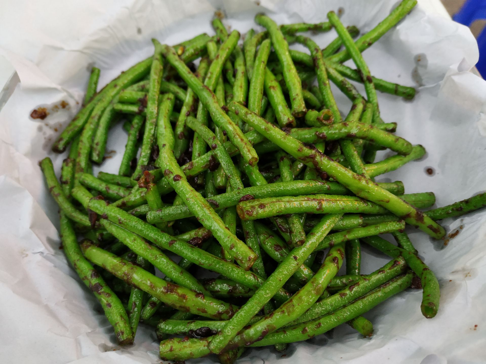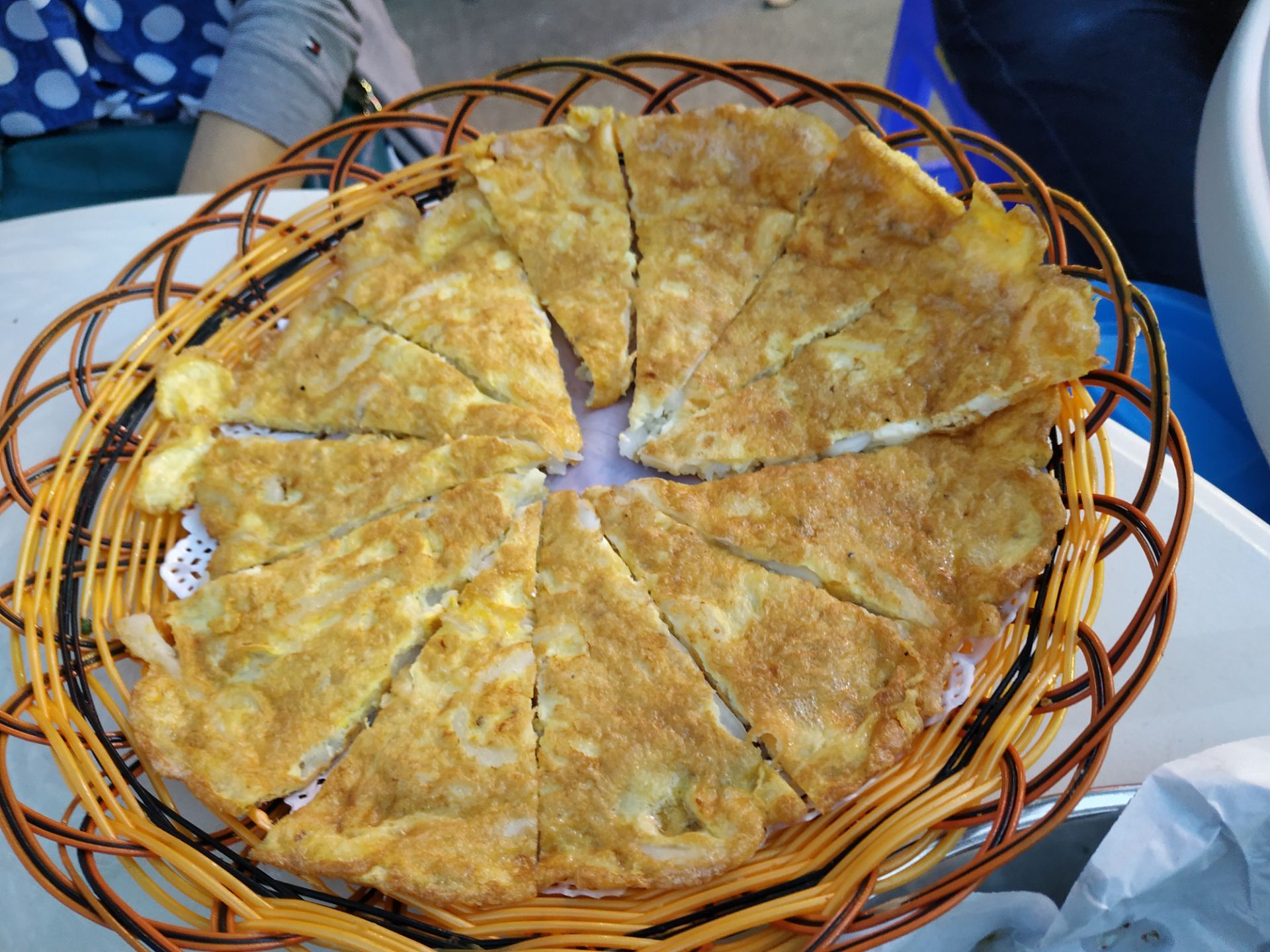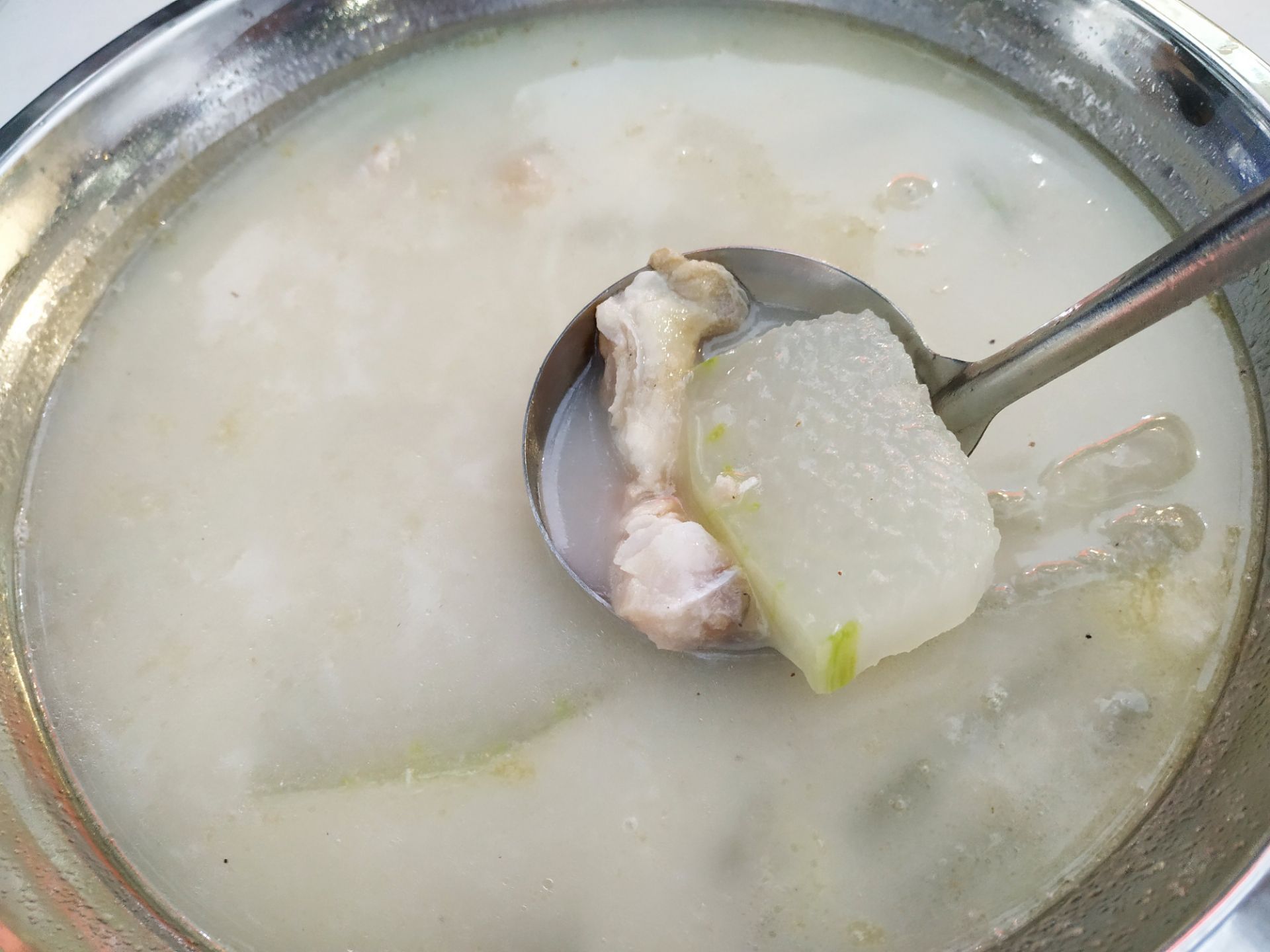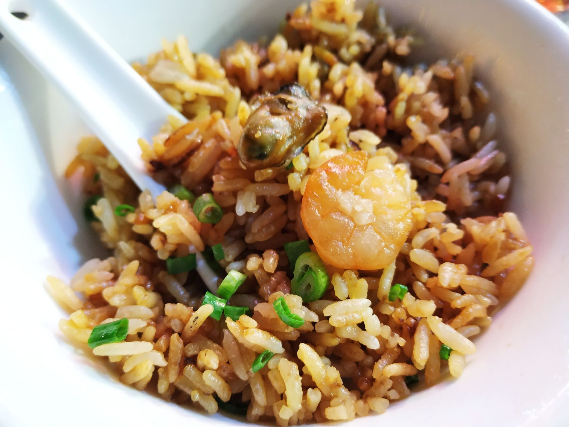 [2019-05-03]我们在顺德游玩,将近晚餐时间,就导航去这家“飞尝蚝”,因为亲戚听到他朋友的介绍,说这里吃蚝不错,于是我们就来试试了。来到店门前,在路上窄窄的划线停车位上把车停车,刚刚好剩下最后一个车位,我们庆幸来得还算及时,要不然比较难找停车位了。看到门外的露天桌子已经坐了不少的客人,亲戚们走进大厅去找位,被告知大厅已经全被订了座,只能走回到门外的露天位。那种木桌面、中间有煤气炉的桌子已经全坐满了人,服务员拿了两张塑胶圆桌拼起来给我们。看到附近的客人都点了那种木桶蒸蚝(大大的圆形铁锅,上面盖个很大的木桶作为锅盖),我问服务员,我们坐这种桌子,是不是就不能点那种蒸蚝了,服务员答道,蒸好了再端上来给你们。亲戚们走到大厅里点菜了,点了6个菜和一个焗饭。(1)蒸大蚝,一打108元,端上来后,我们发现蚝的上壳还未开的,服务员给我们一把小刀,让我们自己开蚝。蚝肉挺鲜甜的,里面的汁水也很鲜美。我们看到附近桌的蚝都是有小小鹌鹑蛋的,而我们的没有,打开就只是蚝肉,问了服务员才知道,原来那种是不同的,她告诉我们下次来,要指明点那种188元的,才是有鹌鹑蛋和鸡子的,亲戚们倒是觉得幸好没点那种,因为大家都说不吃鸡子的,哈,我们想着下次能否点个只加鹌鹑蛋的生蚝。不过看着别人桌上的“鸡子+生蚝+鹌鹑蛋”的色泽真的很漂亮,我也忍不住跑去拍人家桌上的菜了,那时大厅里订了桌的,人还没到,漂亮的“鸡子十生蚝十鹌鹑蛋”已备好了在桌面上。(2)三水冬瓜鱼头汤,38元,好大的一盘汤,冬瓜挺甜的,鱼头也很鲜美,大家都爱这个汤。(3)酱爆豆角,30元。豆角挺爽脆,不错。(4)酥炸生蚝,68元,外胸内嫩,肉汁鲜美。(5)山坑鲩鱼,60元。鱼肉好滑,好鲜甜,好好吃。(6)白饭鱼煎蛋,58元。(白饭鱼48元,附算加煎蛋10元)白饭鱼不多,蛋煎得有点老,这个一般般。(7)金牌焗蚝饭,48元。很大个瓦煲端上来,里面的饭不算多,但是瓦煲只是盛器,饭并不是用这个瓦煲来焗出来的,旁边桌的客人也专门来问我们是不是觉得这个不像焗饭,哈,他们说摸着瓦煲发觉煲是冷的。虽然不是原煲的焗饭,不过也挺好味道的,里面很多蚝仔,也有几个大蚝肉,还有虾仁的葱。挺好吃的,大家都吃得很回味。有机会还要再来这里试试其实的菜式,而且下次得提前订座咯。