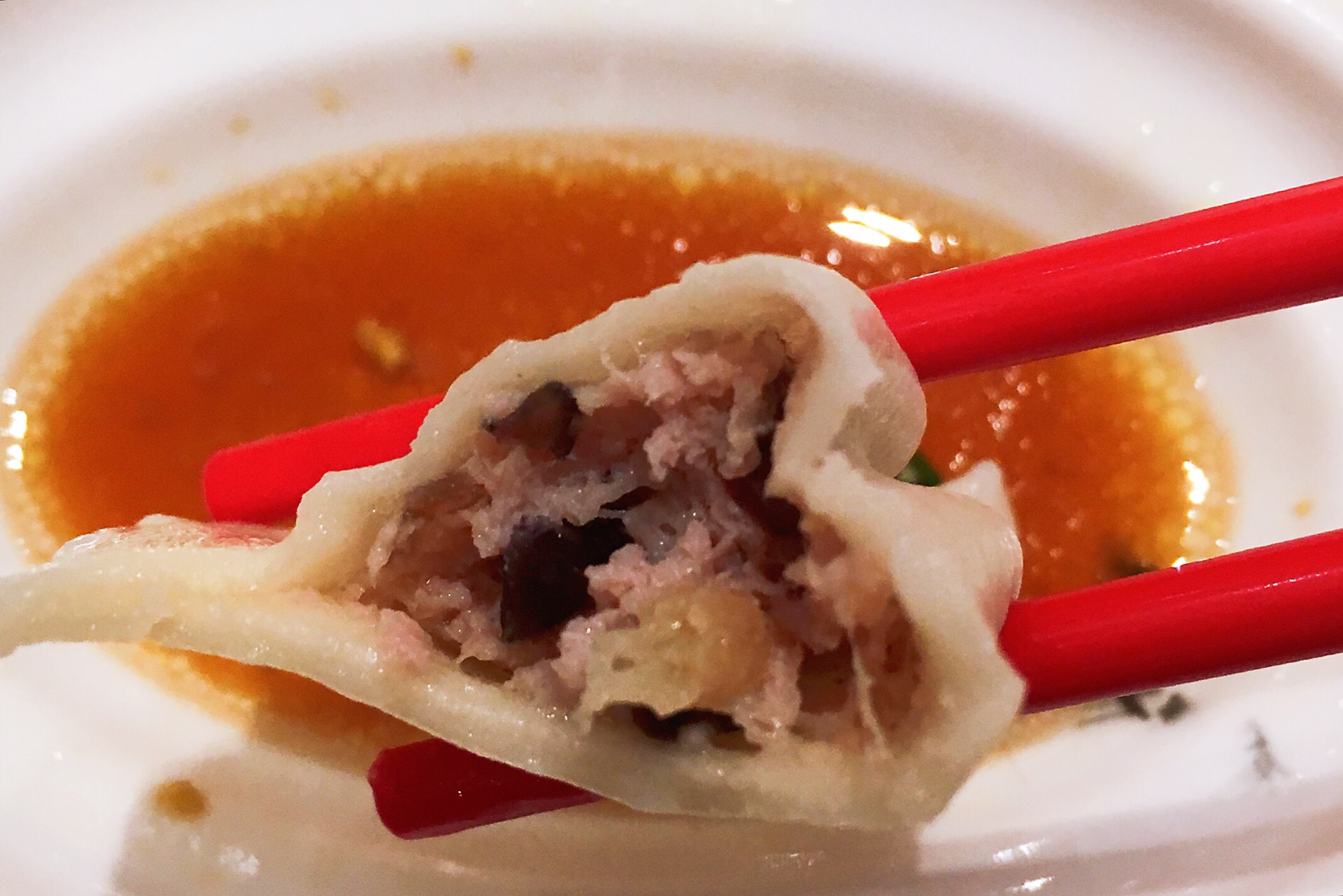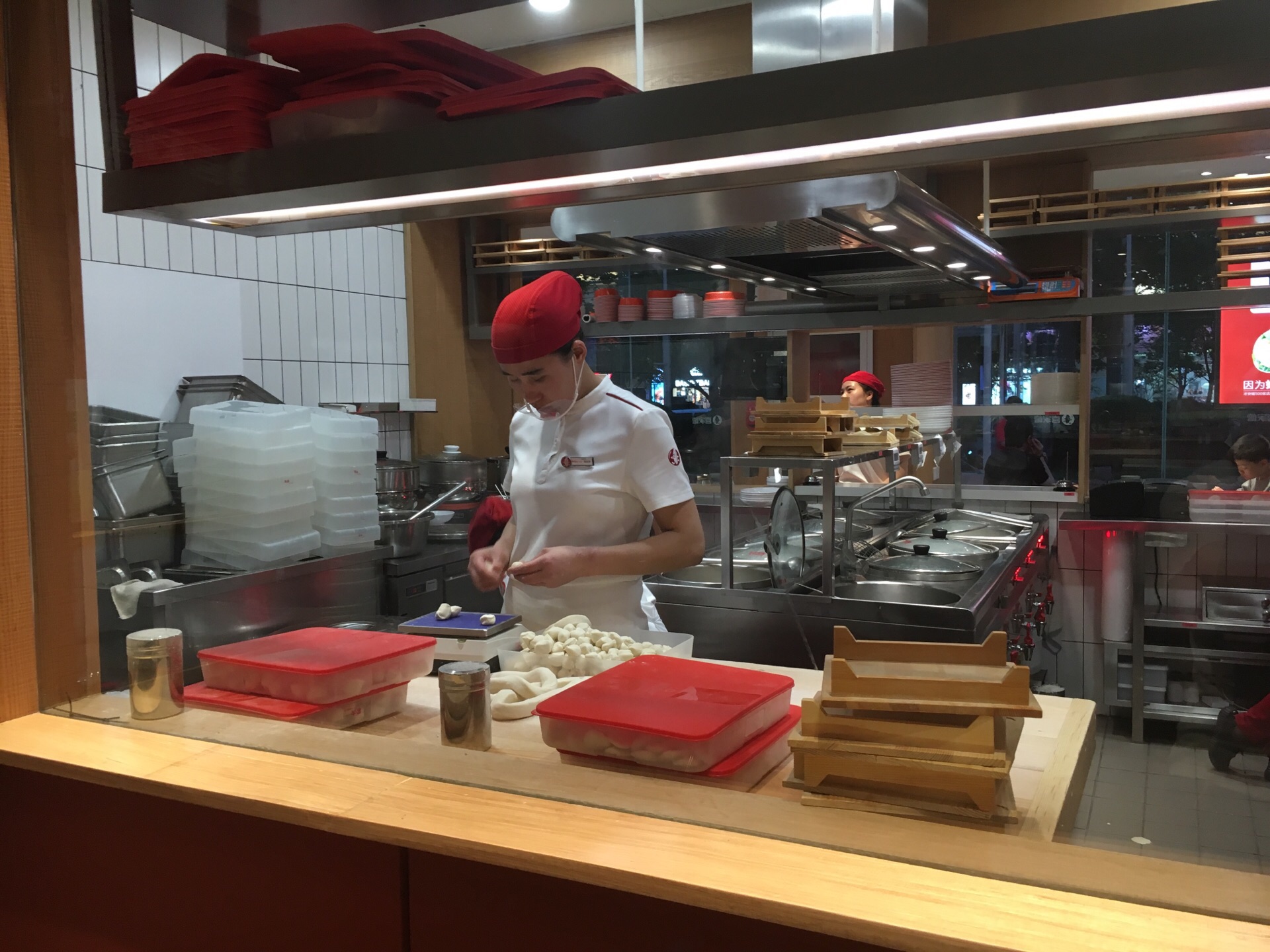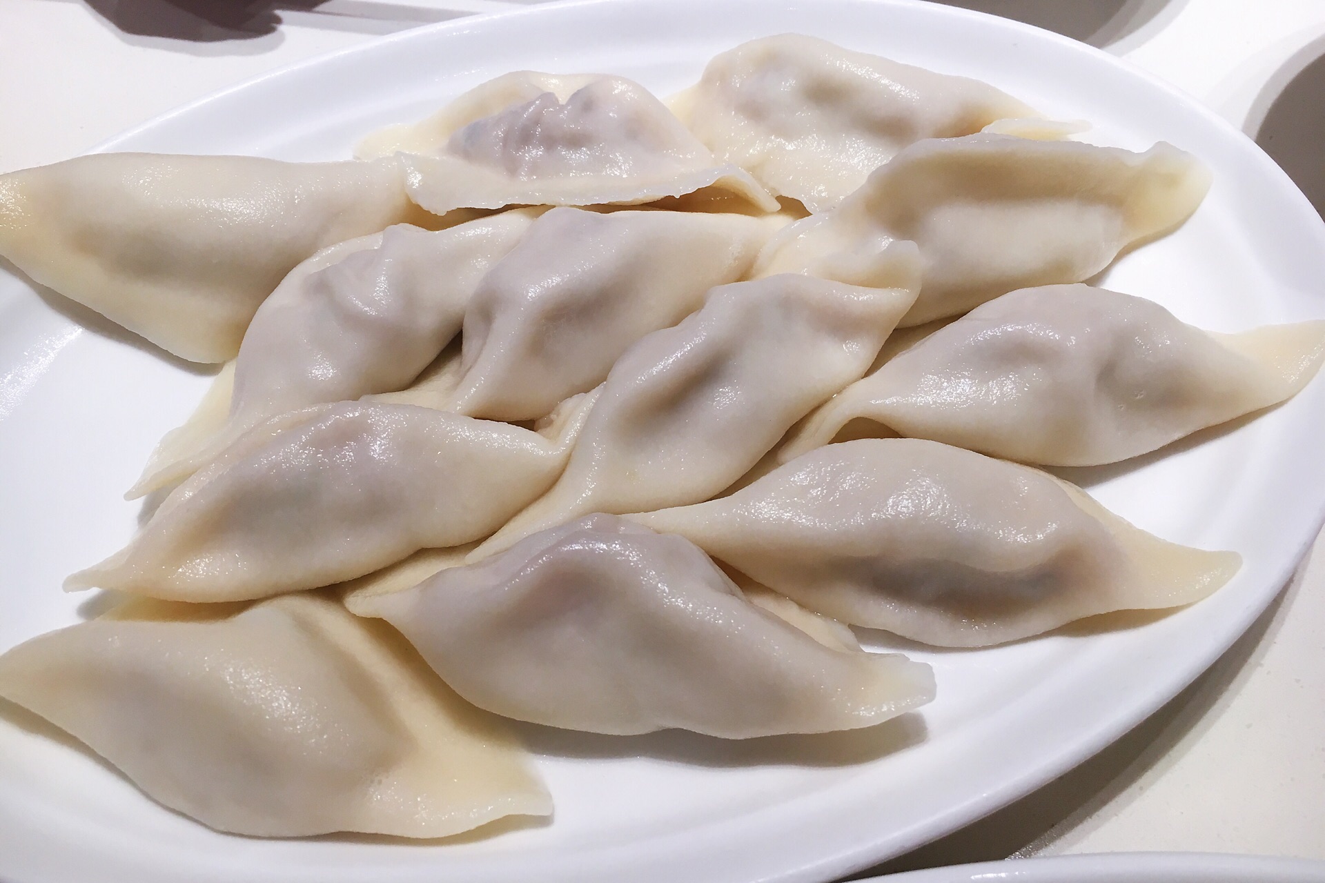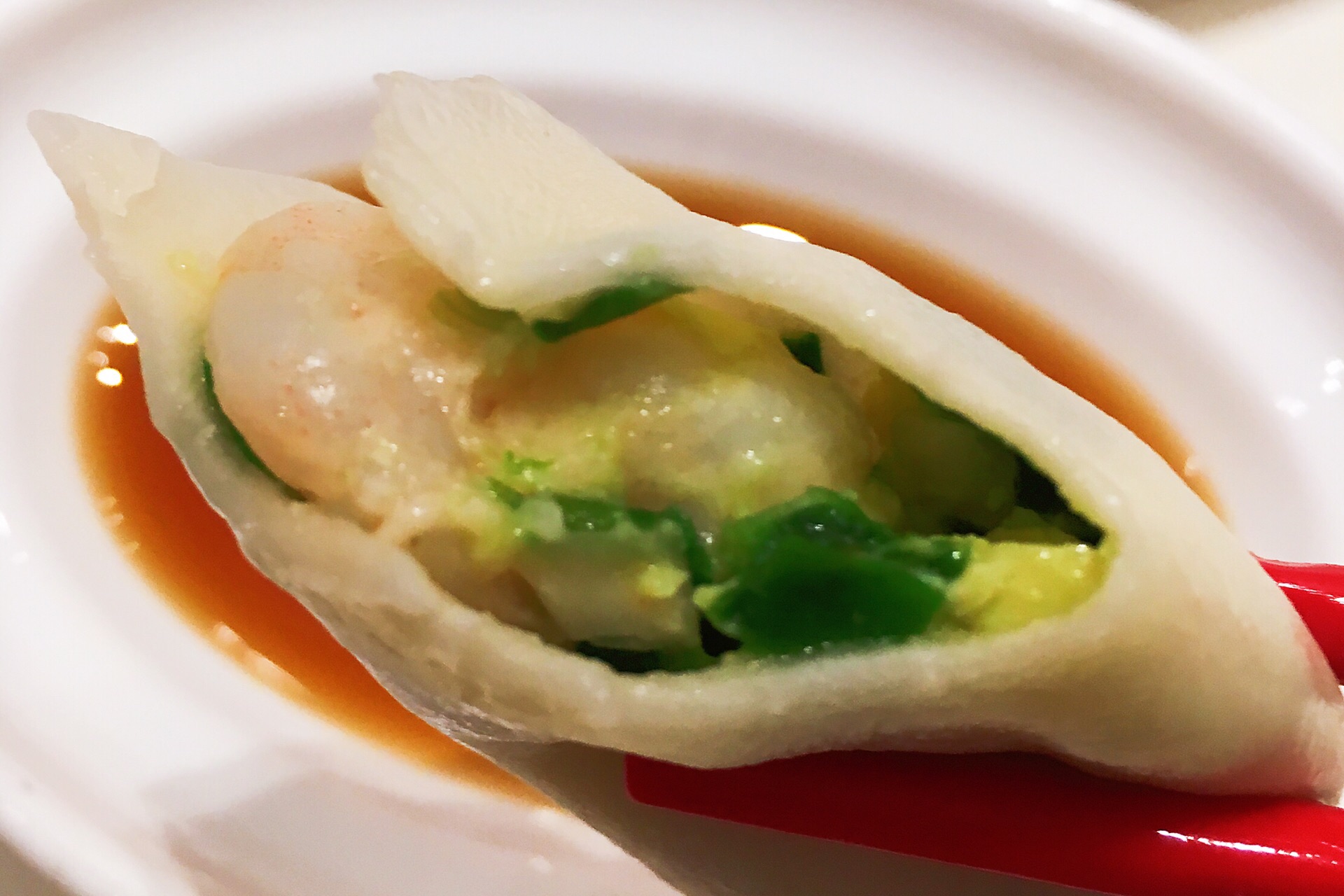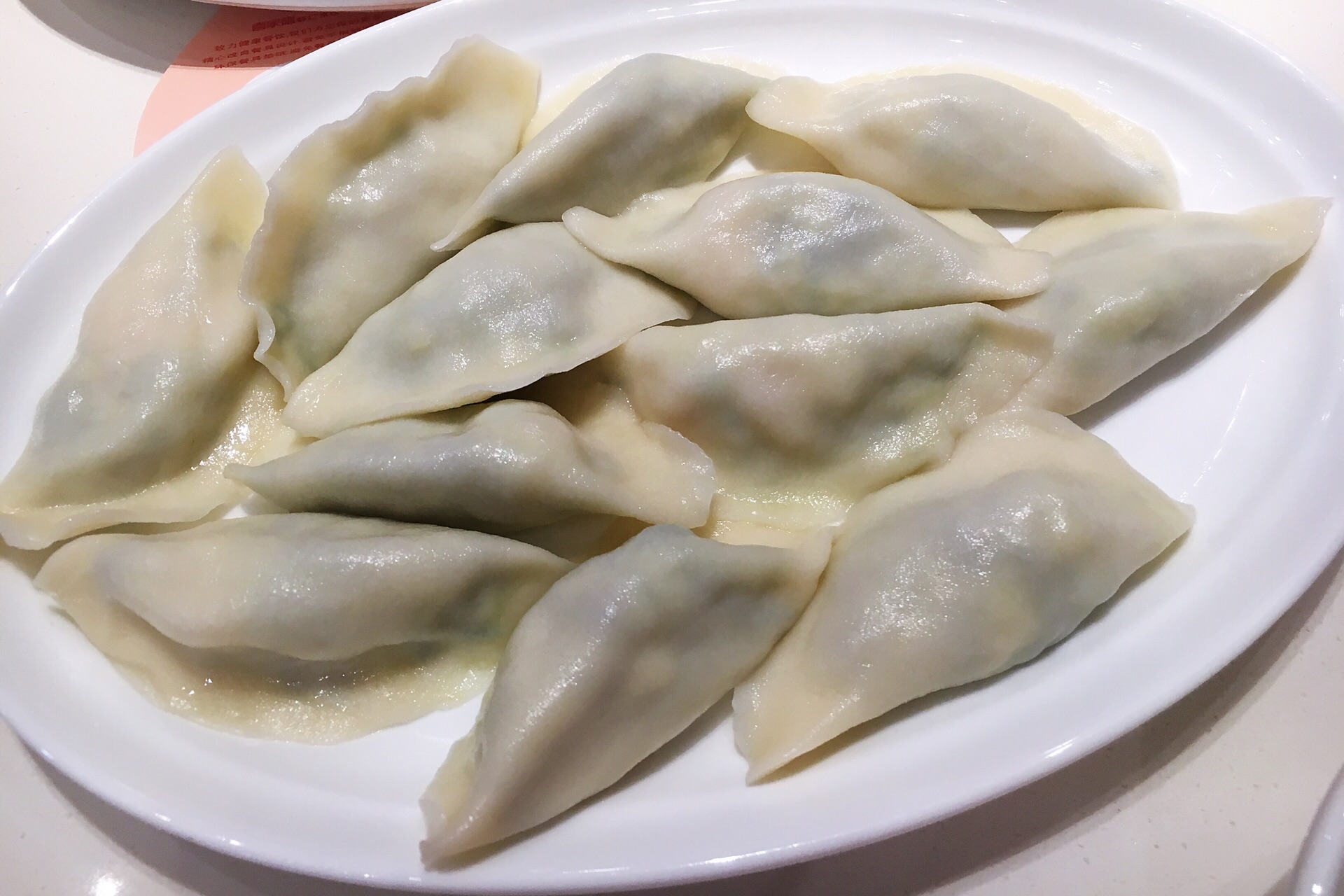 这家水饺店主打虾味水饺,饺子比较长,好入口,虾三鲜的每个里面有一个虾仁,配上韭菜鸡蛋,味道很香,虾也很Q,喜三鲜是肉馅的,猪肉、木耳,还有一种没吃出来是什么,相对油要大一点,松仁土豆丝,凉拌粉,口感比较脆,里面有几颗松仁和黑芝麻,草莓酸奶比较稀,不过感觉像草莓榨的,奶味不浓,服务上,店员热情主动,习惯不同,不过落座以后,都会主动先倒上一碗热乎乎的饺子汤,调料是自己到中间的台子上自取,有醋、酱油、蒜、辣椒,还有饭后清口的糖,筷子会放在一张纸餐垫上,相对比较卫生,环境总体还行,店面不是很大,这个季节吃饺子还是有点热,桌椅摆放比较紧凑,中间可以看到师傅们在包饺子和煮饺子的过程,由于是现点现煮,所以上餐速度不会很快,一盘有12个饺子,个头看起来还算大,下单是扫桌面上的二维码,然后直接付款下单,服务员会把打印的小票送过来,然后等着上餐就好了,餐后服务员开会主动过来询问要不要加饺子汤,只不过没有什么优惠活动