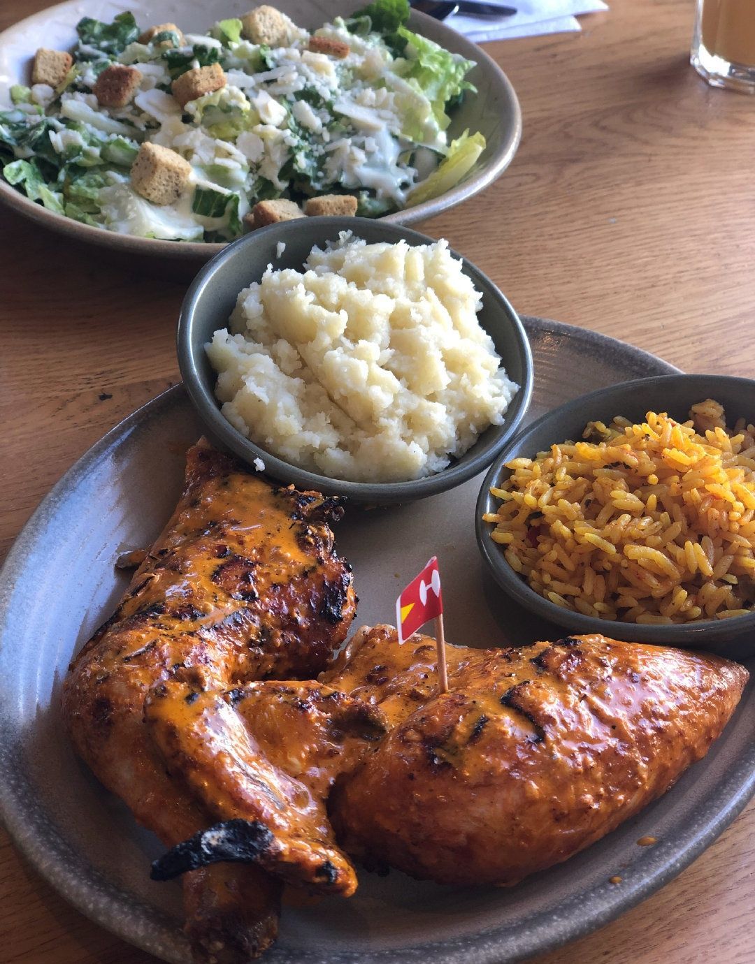 网友2019-05-06跟着发小打卡了他的学生时代套餐nando‘s,据说来这儿一定要吃它的调料[doge] 鸡肉挺嫩挺行的跟着发小打卡了他的学生时代套餐nando‘s,据说来这儿一定要吃它的调料[doge] 鸡肉挺嫩挺行的,怒吃半只鸡!凯撒沙拉不太行,cheese太太太多了
