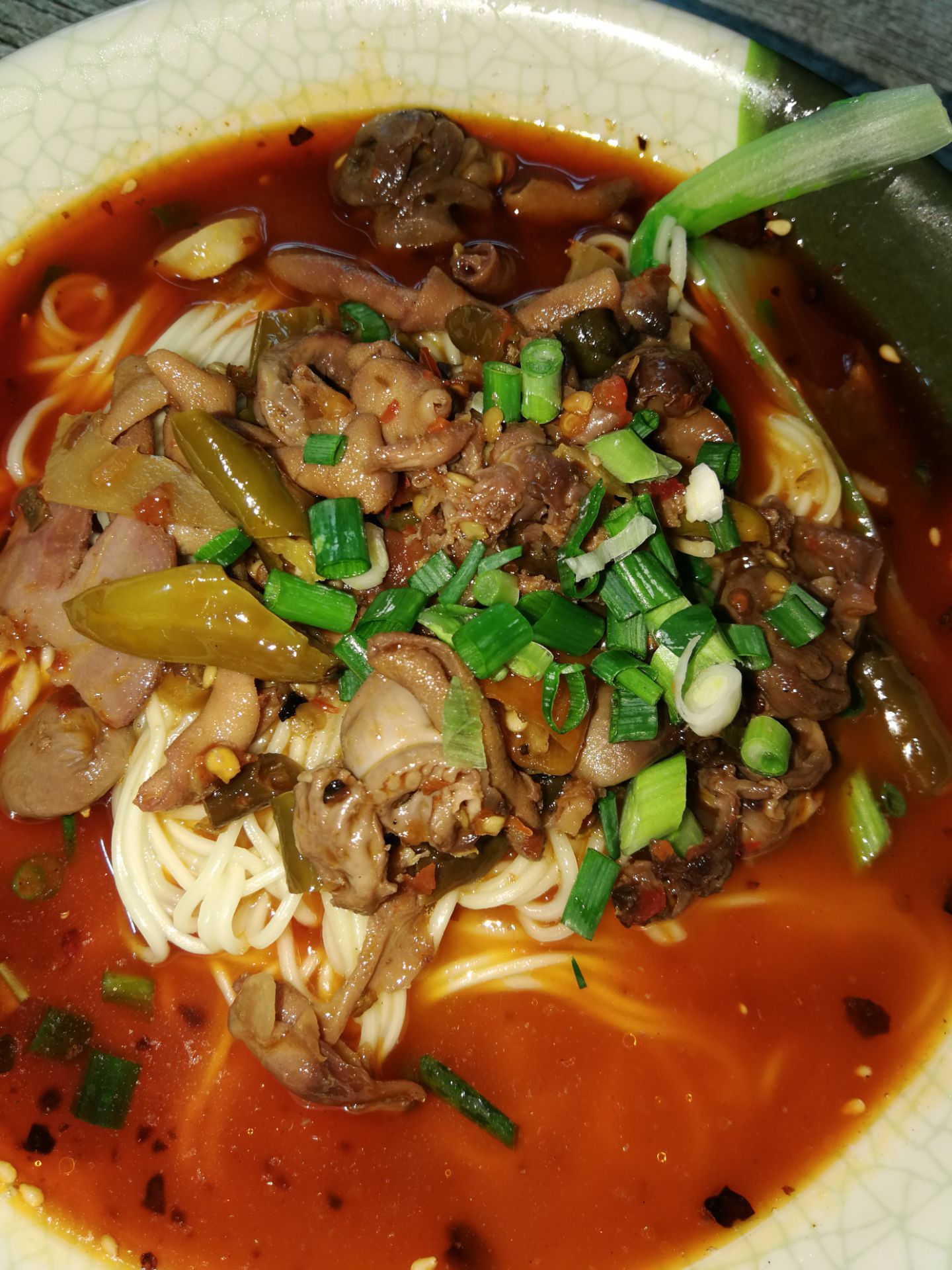 网友2019-05-06环境一般,就是路边的小店,不过味道挺不错的,份量也很足,点了一份鸡杂面,一份小面环境一般,就是路边的小店,不过味道挺不错的,份量也很足,点了一份鸡杂面,一份小面。虽然顾客也比较多,面上得也挺快,他家的辣椒很香。