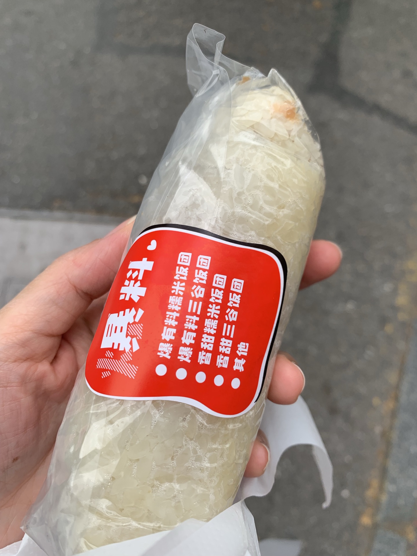 换乘公交路过永和大王凤起店,突然想念他家的爆有料饭团了。双色爆有料用的是保鲜膜包装,油条有些韧,不脆,着实影响口感;传说中好喝的脏脏黑糖豆浆是第一次喝,可能是要求热因的关系,没有图片那么惊艳,味道也只能说一般。