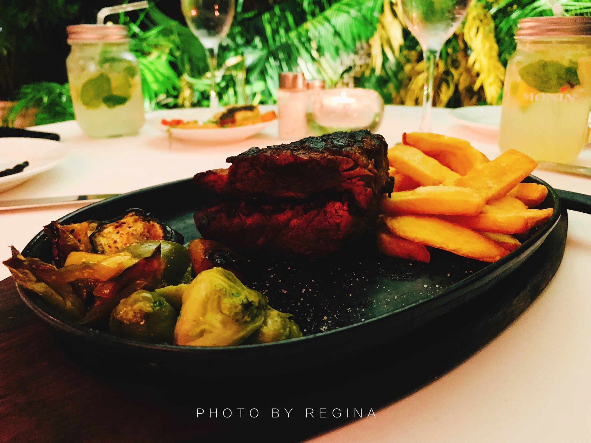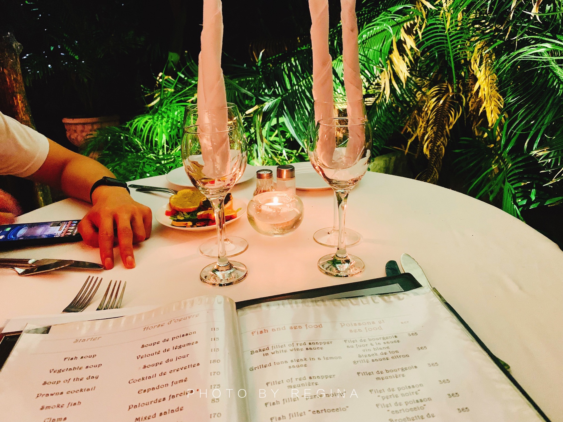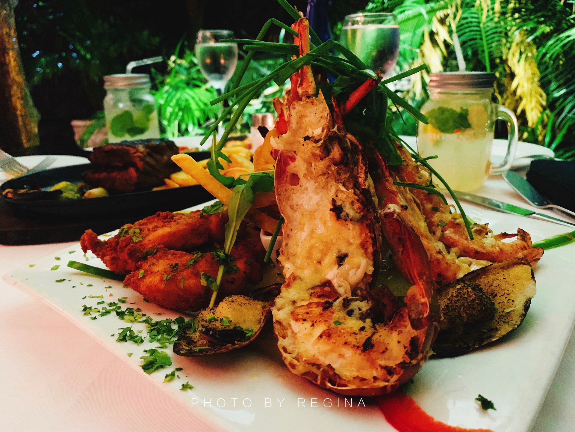 慕名而来,这家餐厅在当地非常有名,主打意大利菜系和欧洲混合菜系。每天都座无虚席,最好多提前几天预定。这家餐厅只有晚上(周一至周六)才营业,周日不营业。 【位置】 地理位置优越,紧邻博瓦隆海滩,离Coral Strand酒店很近,如果住在博瓦隆海滩附近,可以选择来这家。 【环境】 安静的环境,舒缓的音乐,很有情调,适合情侣约会。这次没订上露天的位置,就选了室外花园景观位,暖色系为主调,氛围很好,唯一不足就是在室外用餐有点儿热。 【口味】 #Seafood platter#,龙虾套餐,分量很足,味道鲜美。主食配的薯条,没选米饭,塞舌尔的米饭都是大长粒儿的,吃不惯。 #Beef fillet#,菲力牛排,比较厚实,如果火候再小点儿味道会更赞。 #Mixed salad#,低脂,健康,但是真吃不惯没有沙拉酱的沙拉。 #Mojito#,特意选了一款不含酒精的,味道很好,比在国内喝的好喝。 【服务】 餐厅老板非常热情好客,会主动过来询问客人菜品是否满意,而且还会畅聊几句。可能是因为来塞舌尔的中国人很少,餐厅老板跟我们聊了很久,在得知我家小哥哥的职业后,老板非常兴奋的要跟我们合影留念,还赠送给我们两款酒品尝,太热情了。 【价格】 价格较贵,不过塞舌尔的整体消费水平比较高,随便吃顿饭人均都至少500元起。