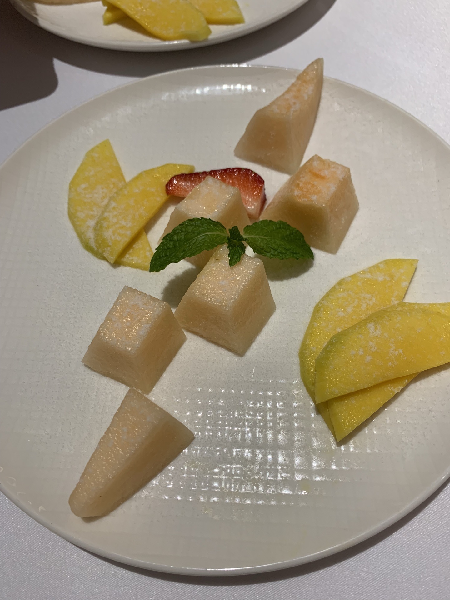 【口味】气泡水很好喝,解渴 巧克力甜品比较一般,有点化,另一个还不错 果盘摆盘精致,也很新鲜