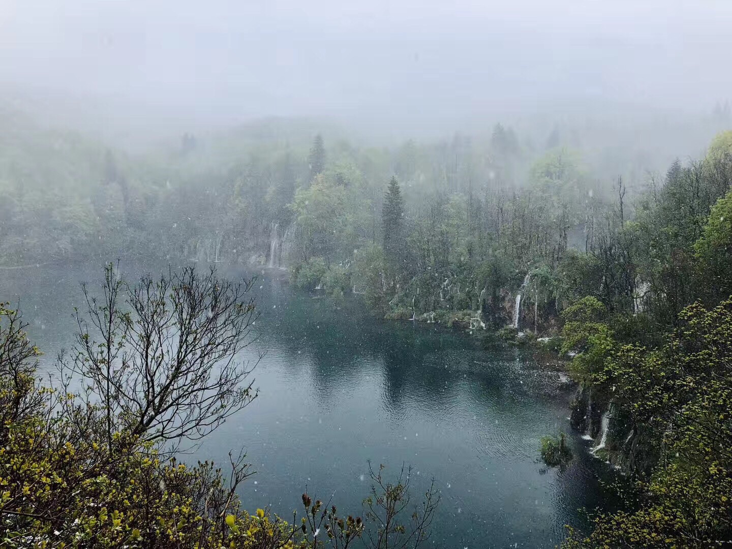 美丽冻人[呲牙][呲牙]。2019年5月克罗地亚十六湖国家公园在下小雪2019年5月克罗地亚十六湖国家公园在下小雪。一行团友都是自由行再参加当地一日游的游客们,虽然之前大家都不认识,但是遇到了就都像老朋友一样聊天…… 大家一起雪中徒步十六湖国家公园,。美丽冻人[呲牙][呲牙]