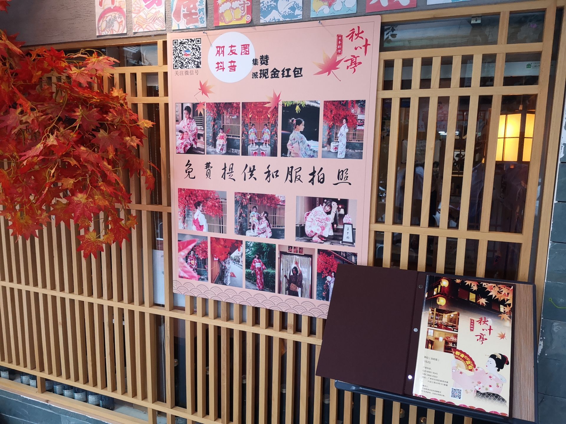 秋叶亭原来就在体育小区附近,个人觉得广州的三大日料聚集区域,就是六运小区,体育西一带,还有江南西一带,教育路一带,个人去的最多的肯定就是体育西这边,离上班的地方不是很远。 (坐标) 原来就在正佳的附近,从那边的门口走过来,大约也就是五分钟左右的距离,虽然里面算是小区里面的巷子,不是特别好找,但是定位是很准的。 (居酒屋) 居酒屋的风格相当不错,虽然里面不是特别的大,但是这家店铺的三个秋叶亭大字还是很显眼的,进去之后是前台旁边有一排位置要拖鞋才能够进去的,二楼还是有很多的位置,自己有独立的洗手间,这点相当的不错,还准备了很多的拖鞋可以换。 在窗户旁边,有一些小孩子的挂也是挺有意思的。 (土豆) 日本料理的土豆做得相当的不错,最主要的就是加入了特制的酱料,这边是一整半个土豆来的。 (拉面) 拉面肯定比不上专业的拉面店,但是也是很有诚意的用料十分的不错。 (三文鱼) 三文鱼十分的新鲜,而且也是厚切的,新鲜口感就好。 (天妇罗) 由于原本套餐的内容没有了,就换了天妇罗大虾,个人更喜欢天妇罗,一下子一个人就吃了一大盘。 (炸球) 这个球做的也是相当的不错,一口一个很过瘾,也是比较的爽。 (寿司) 套餐里面的寿司不算是特别的多个头不是很大,比较符合正宗寿司的个头,一口一个也没有压力的。 (海草) 分量算是挺多,但没有什么太出彩的,因为很多日料店都是这个味道。 (雪糕) 雪糕是送的,口感相当的不错,很快就会融化,记得准时吃。 (服务) 服务态度相当的不错,也可以玩一下朋友圈的小游戏,拿一下红包,是挺有诚意的红包来的。