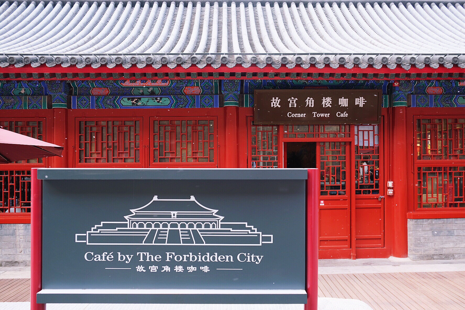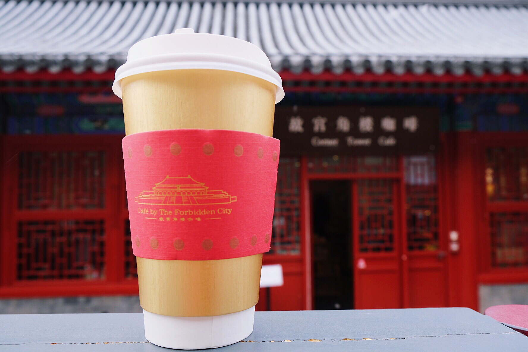 自从开业以后就被各种帖子种草,这次来故宫也是心心念念一定要打卡。本来很烦的飞絮,居然有点雪花的感觉,算是安慰自己了~ 原本以为角楼咖啡会在故宫内的角楼里,还好问了一下工作人员。 【位置】故宫外,神武门出来,左手边,走几步就能看到。 五一假期最后一天下午到店,但人没有想象中多,基本不用排队但室内也没有空座。 几分钟就可以点单完成,最开心的可以自选杯子哦~还是点了最经典的金红配色哒 三千佳丽奶茶,表面都是玫瑰花瓣,奶味很淡,比较清新的味道~ 靠着故宫这个大IP,坐在皇城下喝咖啡,成为网红是必然的。 现在稍微有点过了风头,来打卡正合适,逛累了故宫坐着休息下也很合适,隔壁还有故宫淘宝店可以买些纪念品哦