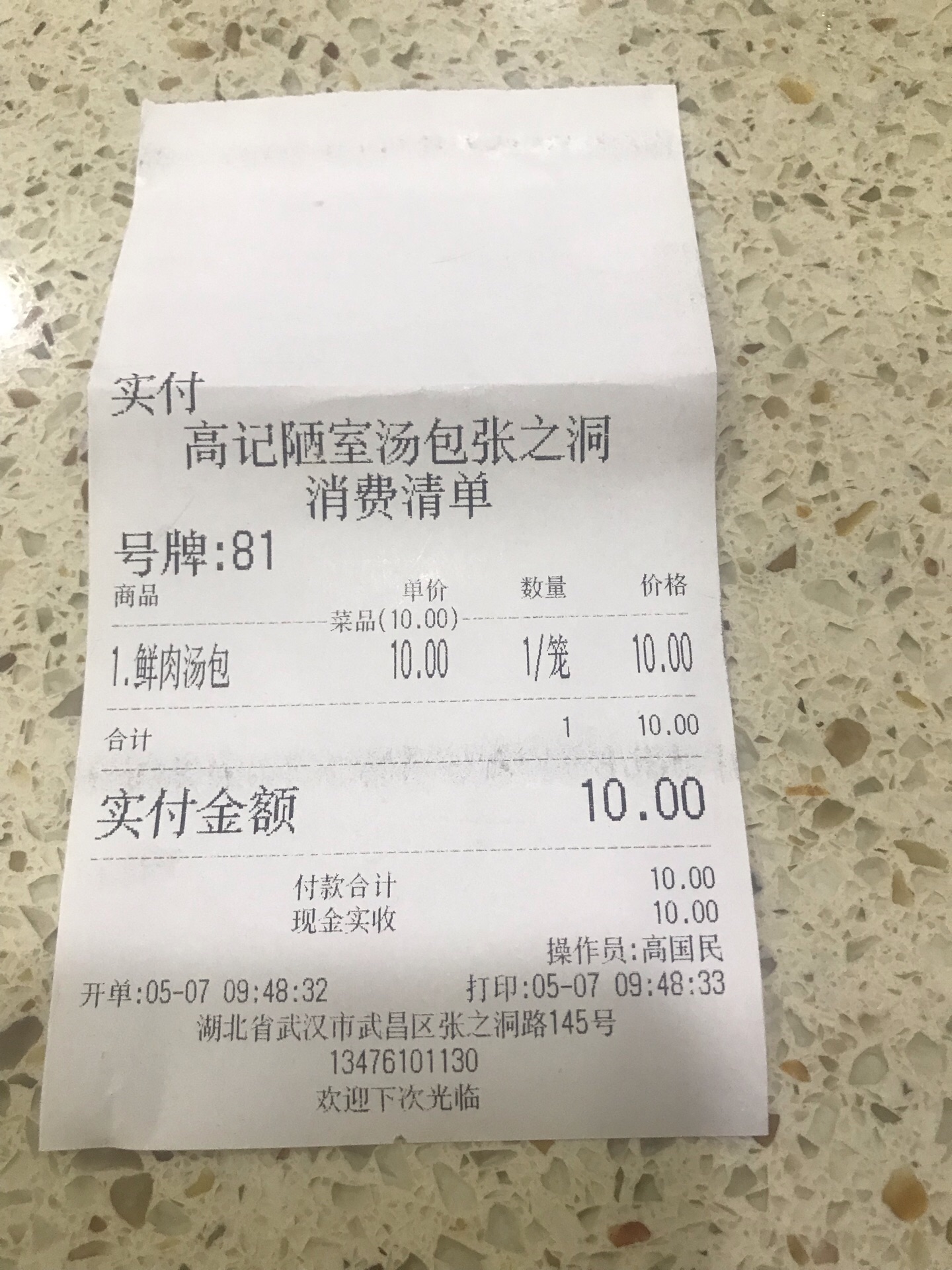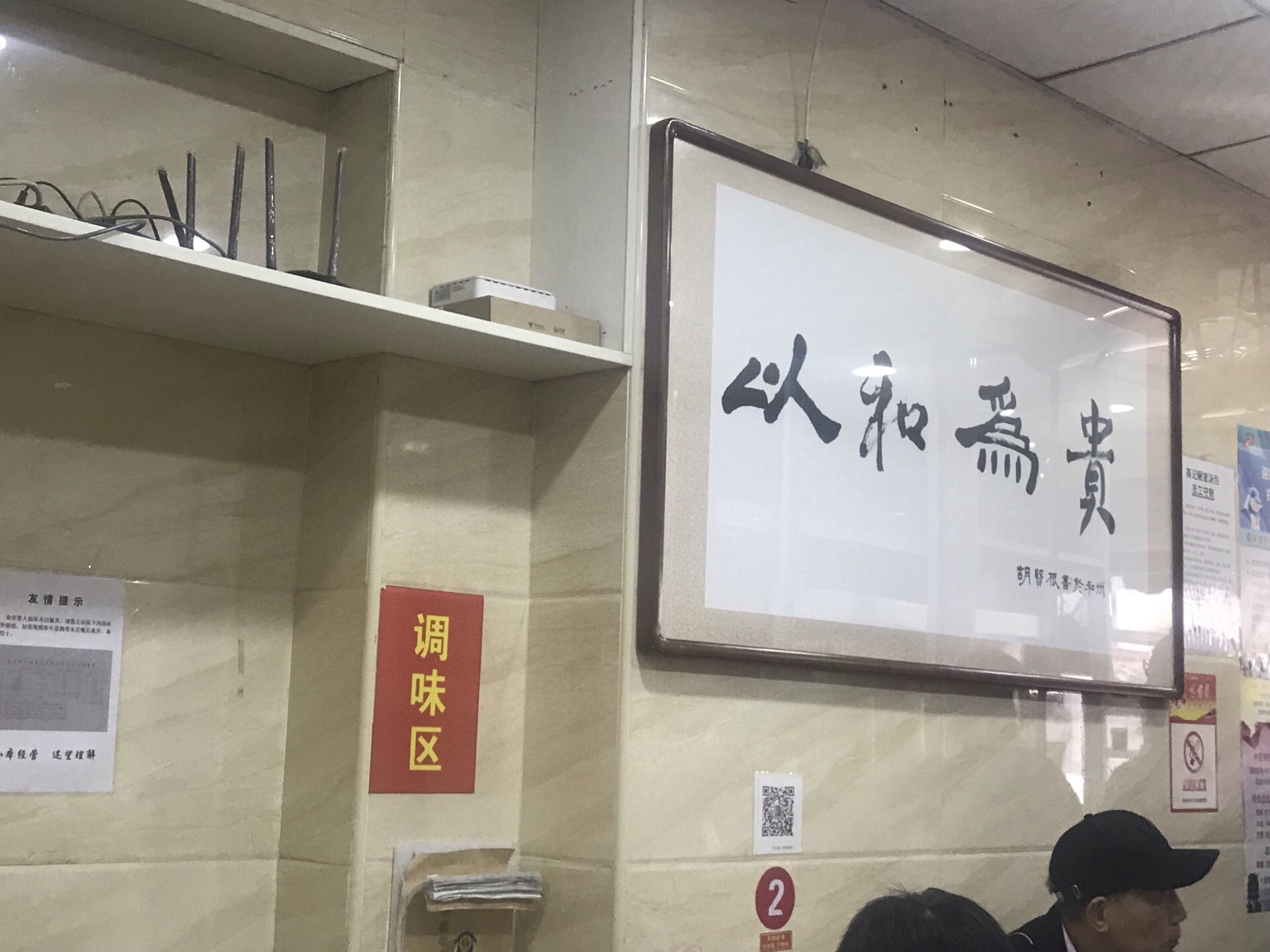 高记陋室汤包,店址坐落于复兴路地铁站附近,店面不大,顾客不少,墙上挂着《陋室铭》的行书条幅,“以和为贵”的匾额,具有文化意味,与小店好生意的情形非常贴合,充分展示了店家的经营理念。早饭只点了6个一笼的汤包,皮薄馅多,咸淡适中,轻咬一口,鲜美的汤汁爆入口中,不愧是推荐菜排行榜排名第一的。一笼汤包价格10元,性价比也不错。