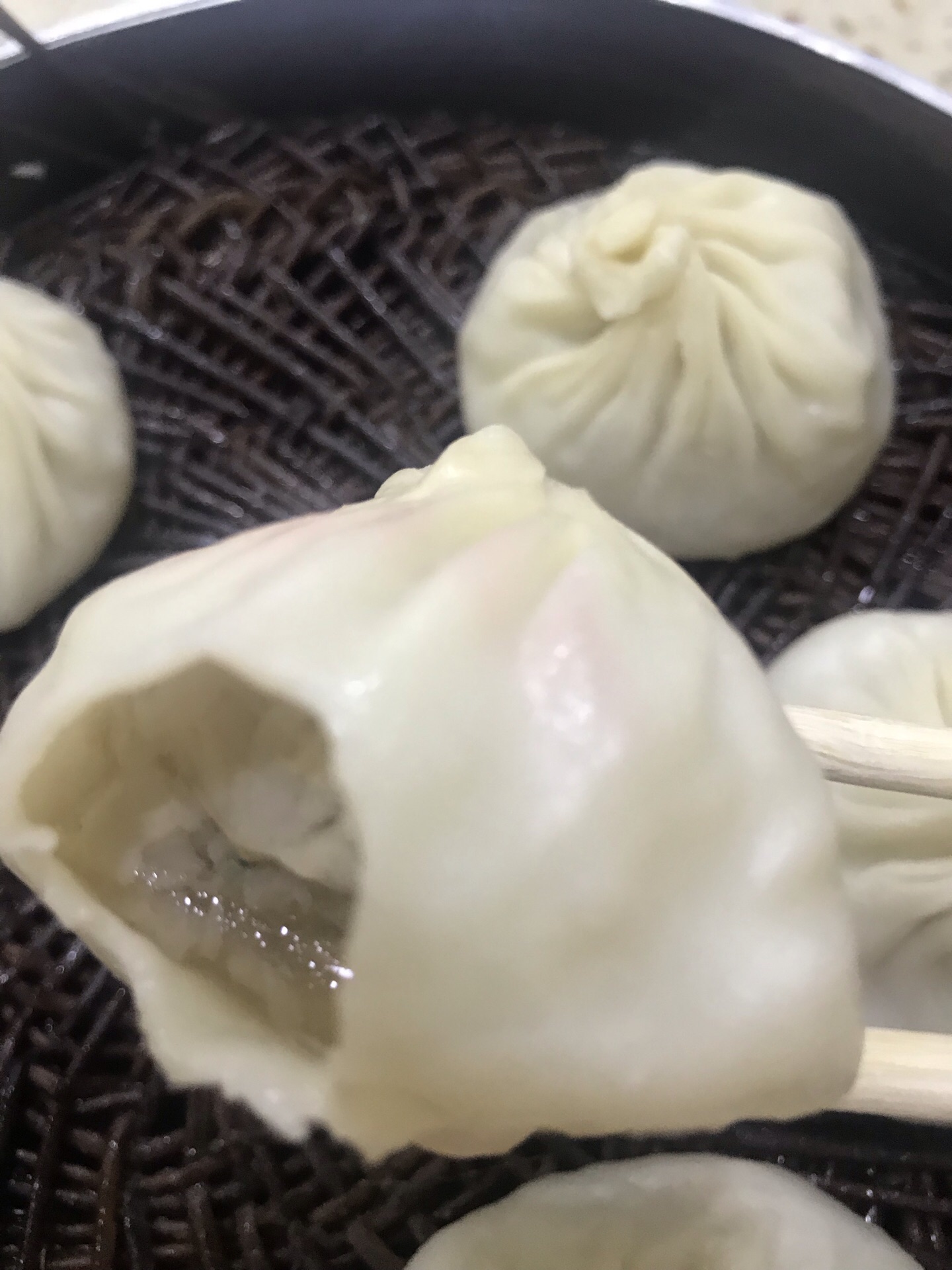 ...6个一笼的汤包,皮薄馅多,咸淡适中,轻咬一口,鲜美的汤汁爆入口中,不愧是推荐菜排行榜排名第一的
