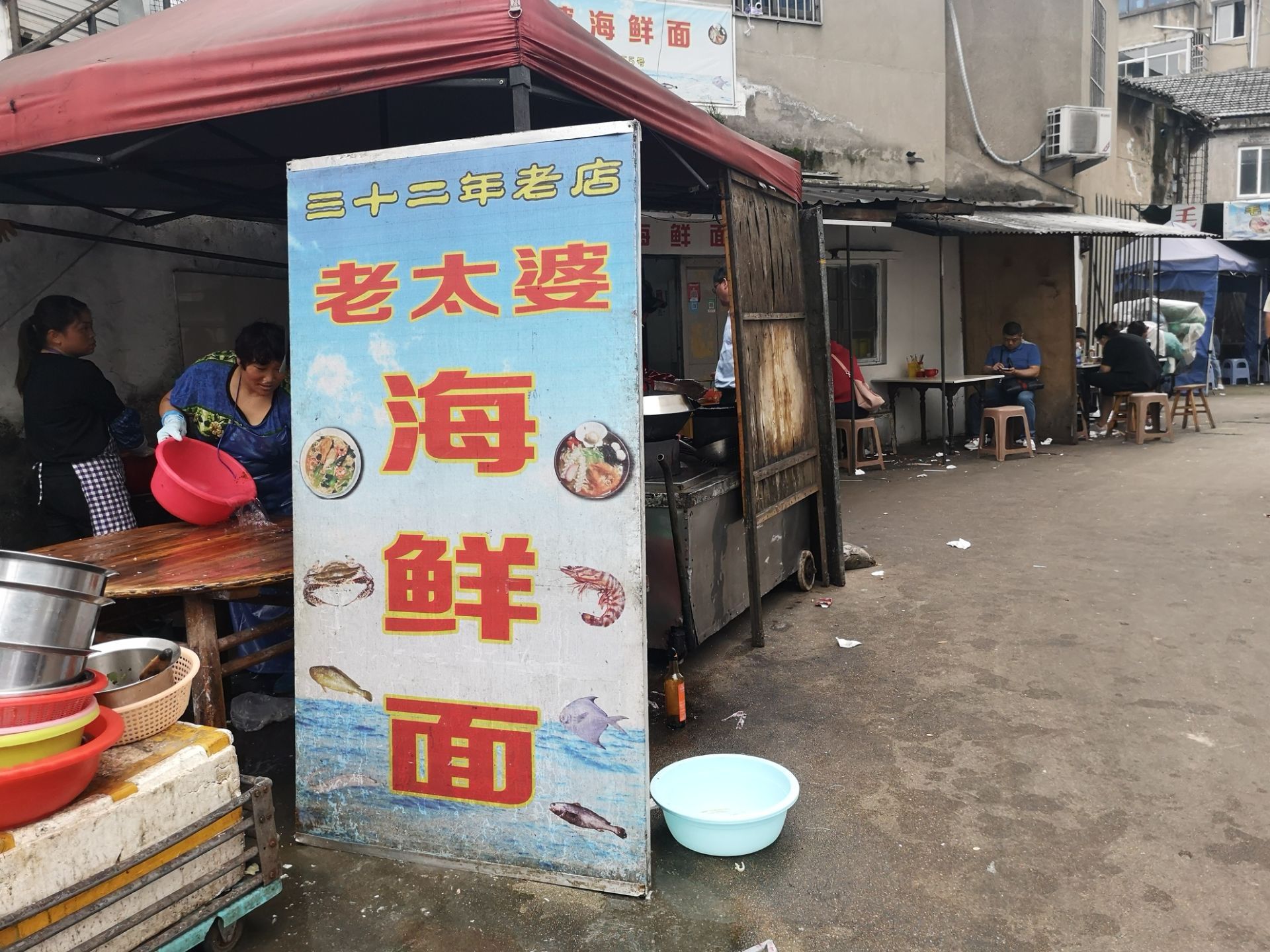 18:00停止营业,16点到店的时候,海鲜已经所剩无几,每样都来一点,一碗大杂烩海鲜面25元。 现场有点混乱,点面、煮面、收钱的一点秩序也么有,有待改善 还有就是这碗也太随意了,陶瓷的、铁皮的,各种样式的都有,至于口感也就那样吧。