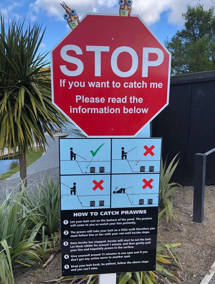 有一片片隔开的池塘当做钓虾池,买票进入虾园,不是简单地塞一根钓竿给你,而是先由导游颇有“仪式感”地向大家介绍一番。第一个项目是孵化园,导游带着大人孩子一起看虾卵,看幼虾孵化池、生长园,一路还介绍新西兰的地质、水质特点、虾种特色等。