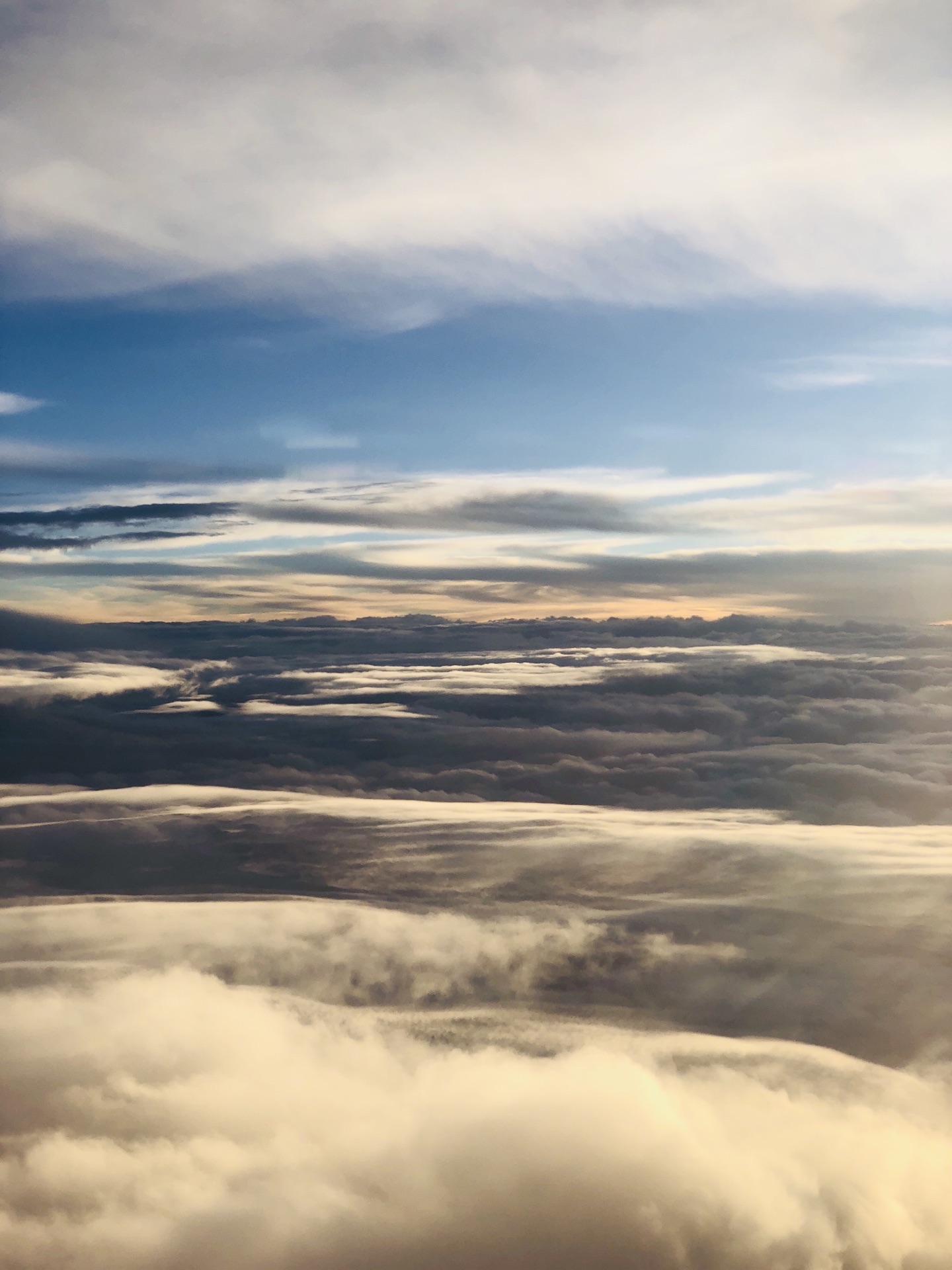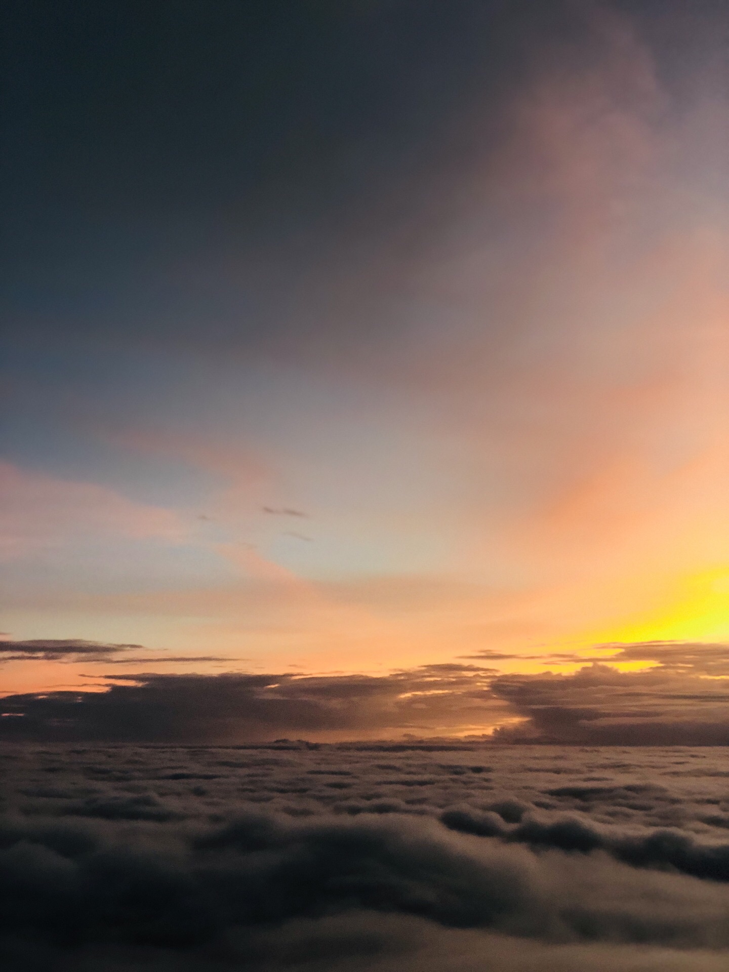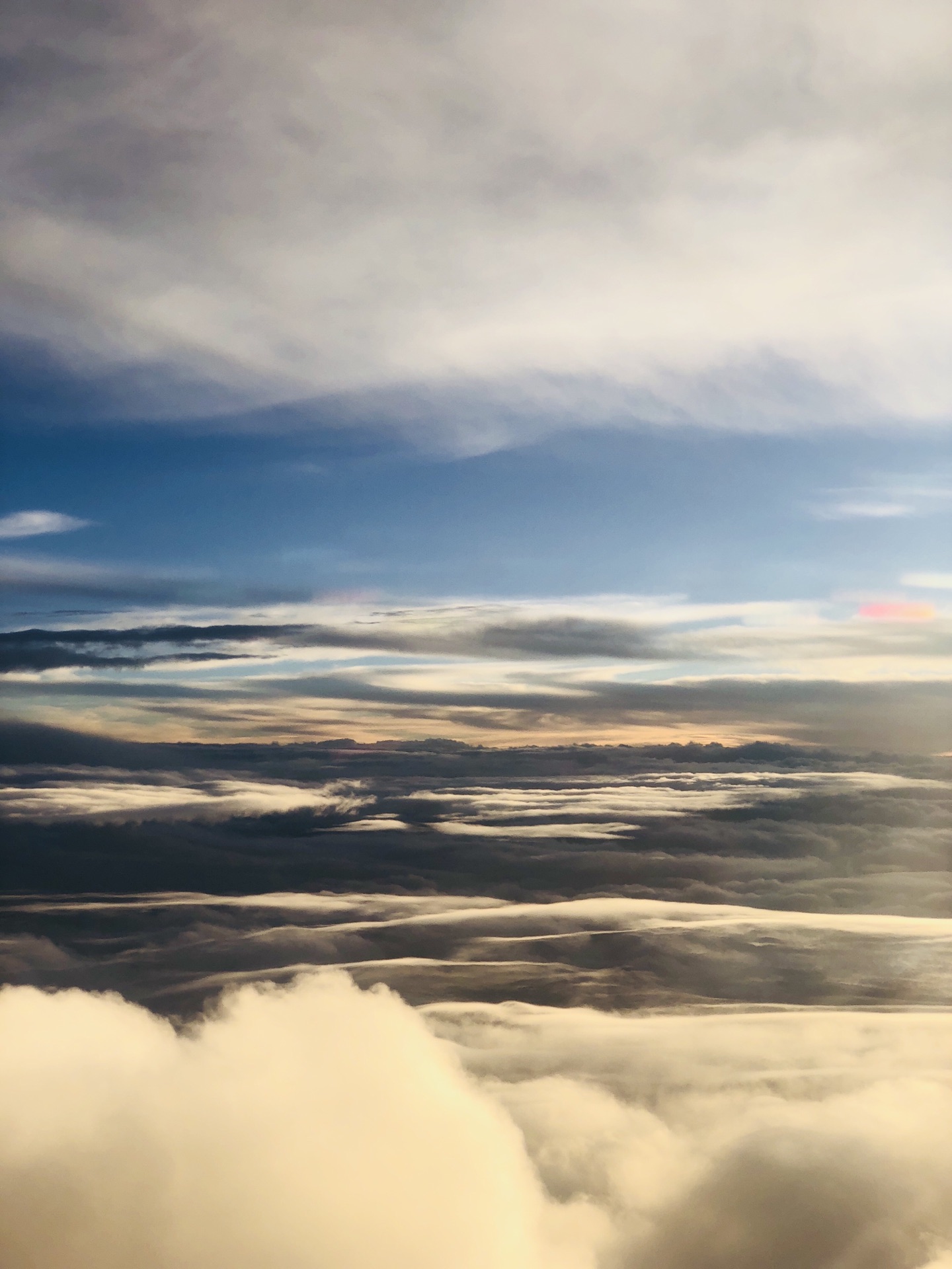 去年初夏前往厦门,由于雷电的原因,航班一晚再晚,心里的火也是渐渐被拱得老高,最后起飞的时候,我已经出离愤怒,一股邪火正没处撒!突然,天边喷出一道灿烂无比的霞光,棉絮一样的雨云被渲的像百合色的海浪~ 云霞的形状变幻莫测,颜色亦是百变纷呈--时而胭脂红,时而紫檀色鸡冠花,整个天空绚烂起来,云朵间充满了瑰奇的神秘色彩~ 事到如今,烦躁之情早已飞出九霄云外了,眼前这奇景还看不过来,哪里有心绪烦躁不安呢。 美丽的高崎,我为你歌唱~