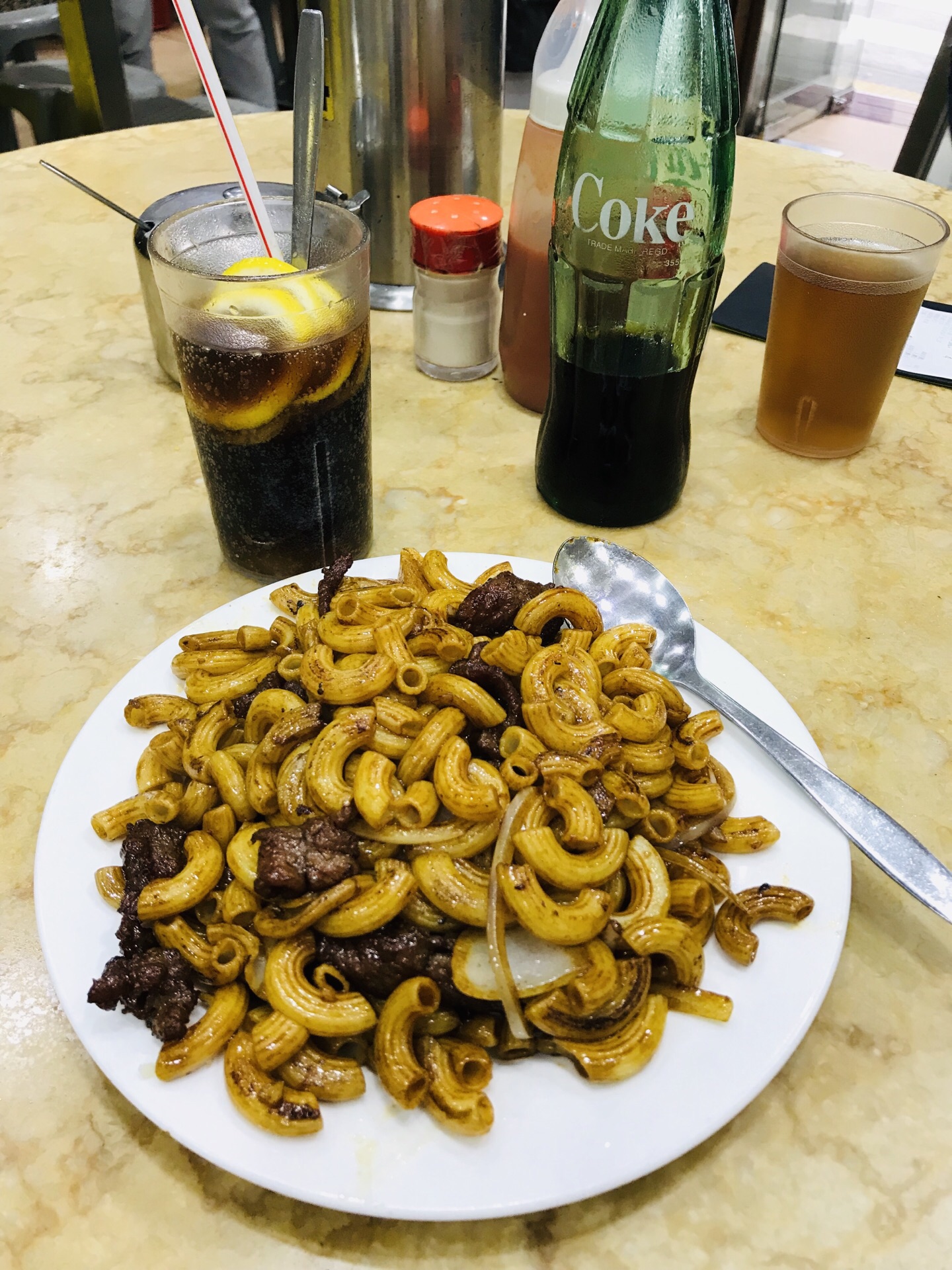 新鸿发咖啡美食位于卢廉若公园附近,位置不难找,最出名的就是牛肉炒通粉。