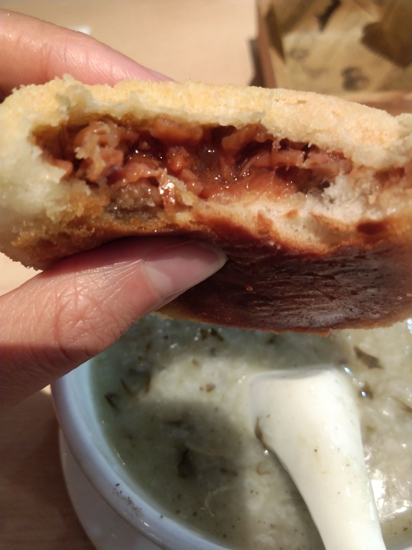 昨天某老板的朋友找我有事,下午约在避风塘见面了,我们约的时间离避风塘的下午茶时间很近的,那就叫了下午茶了,我选的粥套餐,这个粥有点差劲了,白粥里面啥也没有,记得以前有鱼片粥啥的,这次好像就是白粥了,这下午茶略坑了,还不如选云吞面那个了。