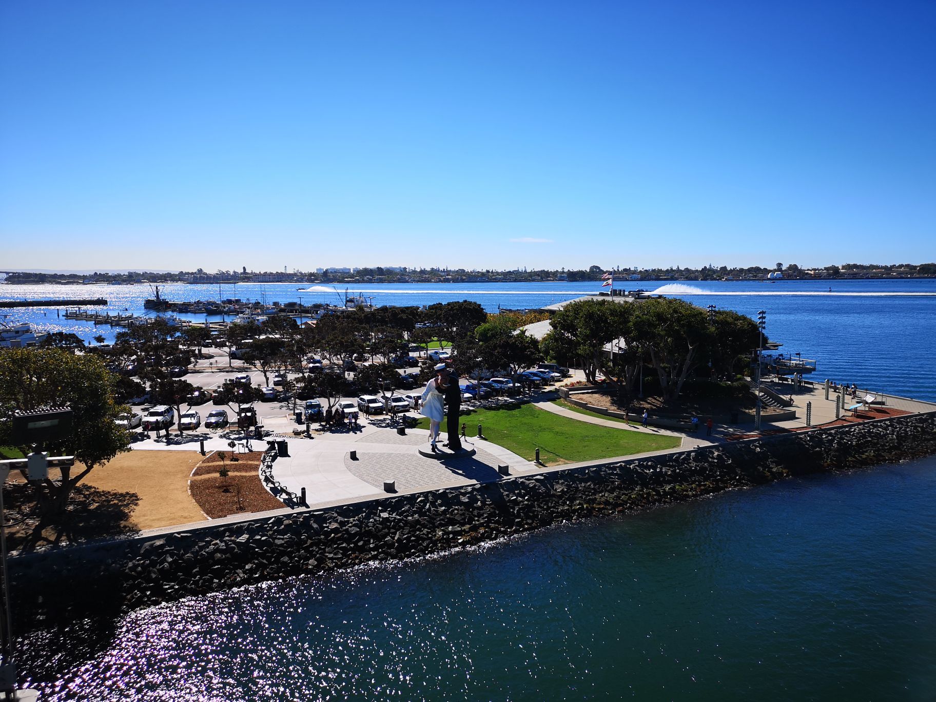 圣地亚哥港是一个著名的美西军港小城,比邻墨西哥蒂华纳市。这里原本是一个静谧安详的小城圣地亚哥港是一个著名的美西军港小城,比邻墨西哥蒂华纳市。在这里有著名的胜利之吻雕像,有气派的航空母舰博物馆,我去的时候附近一直在施工,很是吵闹,有些可惜。这里原本是一个静谧安详的小城。