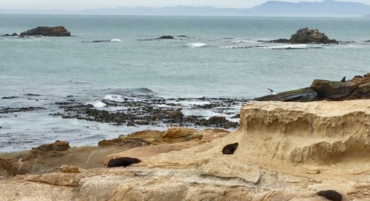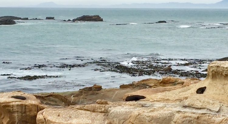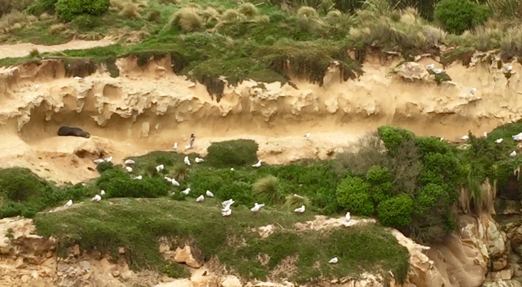 在shag point nature reserve海风较大,shag海角崖地与海豹们还是有一定距离,没有基础设施和步道还是有不少人下到了崖地,貌似在钓鱼还采鲍鱼的。我们游客只能拍拍照,拍拍旅拍。 以下的照片是旅拍的截图。