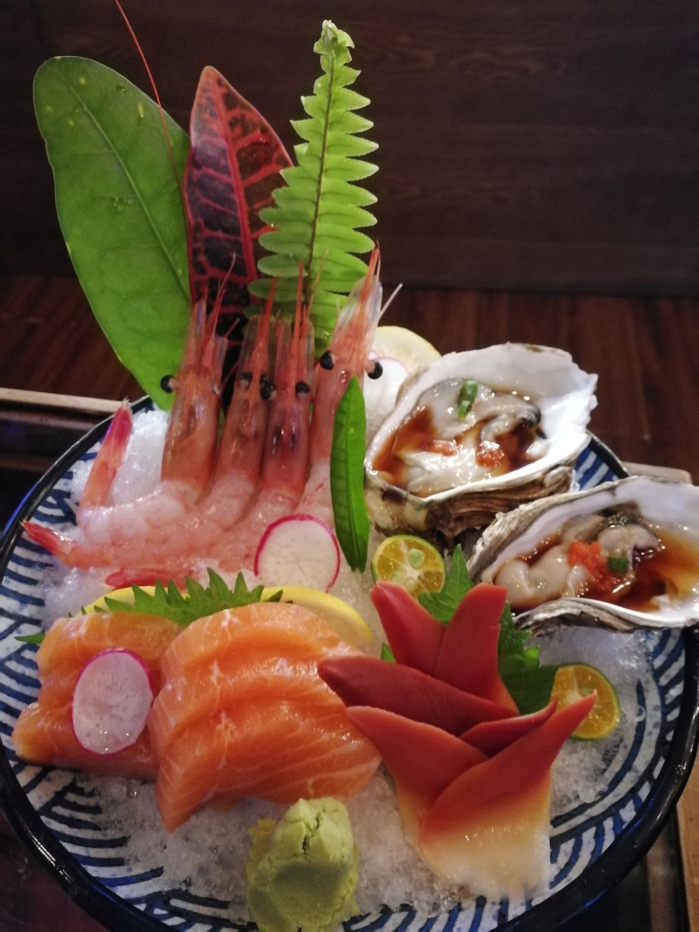 日料刺身拼盘:肥美的三文鱼,鲜甜的甜虾,脆爽的北极贝,更有饱满的生蚝,让人品味海的滋味