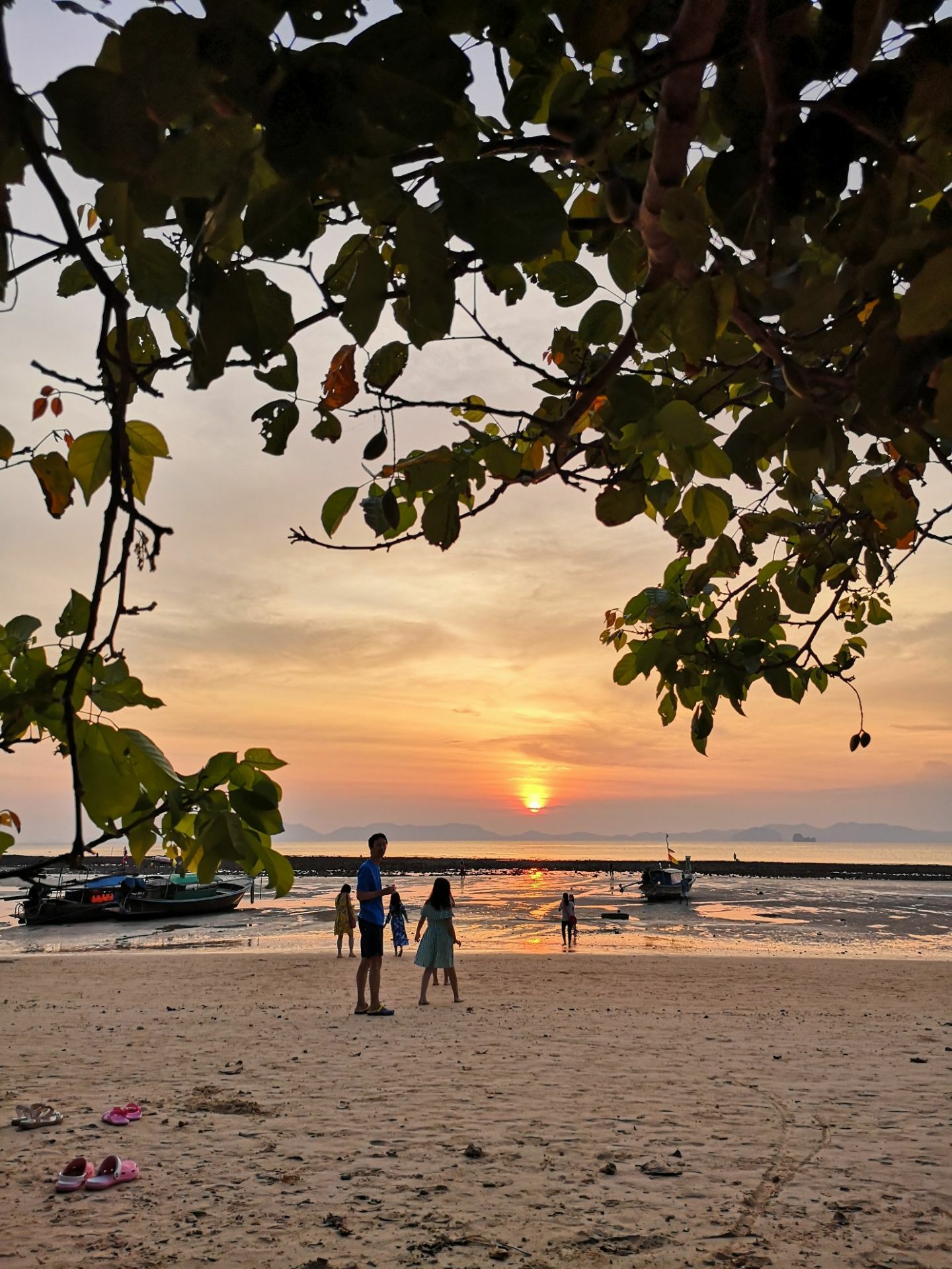 功孟海滩沙细水清比奥南和奥帕南的沙滩好很多,周边都是五星级酒店。也有一些民宿,风景如画,尤其落日余晖泼洒在退潮的海滩,特别震撼。透过路边的椰林,望见红彤彤的夕阳与晚霞,美得像画,却又不像话。迫不及待的走进,放眼望去,海天一色百媚生,天光云影共徘徊。