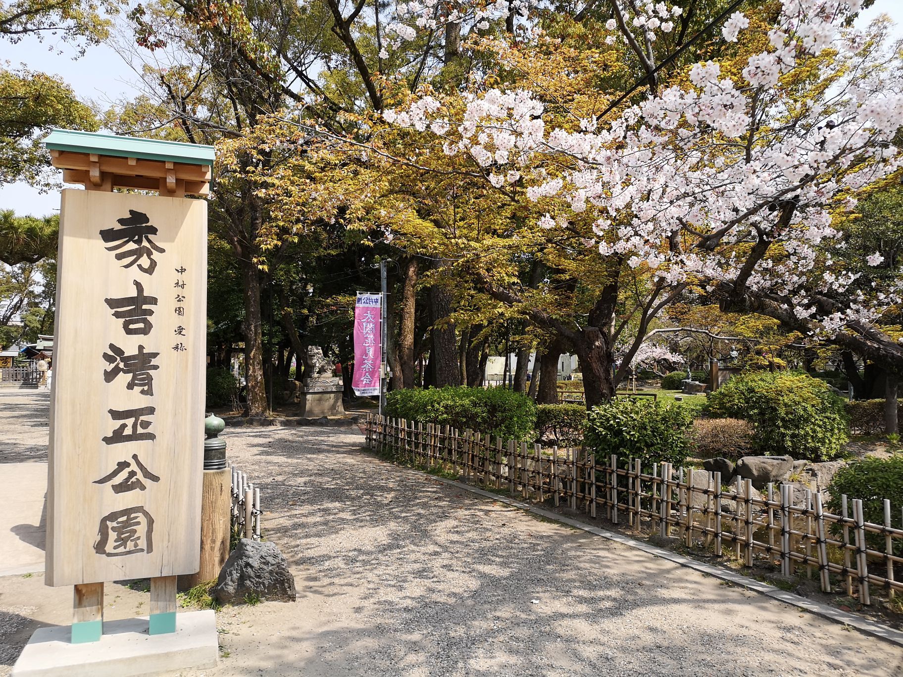 ...一个很小众的公园,游客很少,都是当地人在这里锻炼、散步,还有一些年轻男女在这里拍摄和服的婚纱照中村公园是名古屋市一个很小众的公园,游客很少,都是当地人在这里锻炼、散步,还有一些年轻男女在这里拍摄和服的婚纱照。公园门口是一个很大的鸟居,走过鸟居,即可看到公园大门。