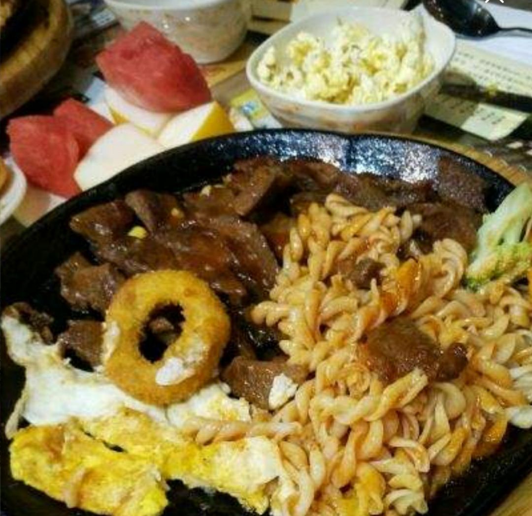 位置非常好找,黑胡椒牛排刚刚好遇上活动优惠10块钱,非常实惠,黑胡椒有点辣,番茄的好吃,西瓜也...