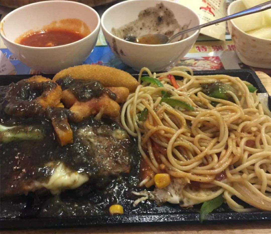 位置非常好找,黑胡椒牛排刚刚好遇上活动优惠10块钱,非常实惠,黑胡椒有点辣,番茄的好吃,西瓜也好吃,西湖牛肉羹也是非常不错,让人还会想再去的店,因为牛排很劲道,就餐环境也很好,甜品很好吃,冰淇淋也很好,就是总体来说还蛮不错的。