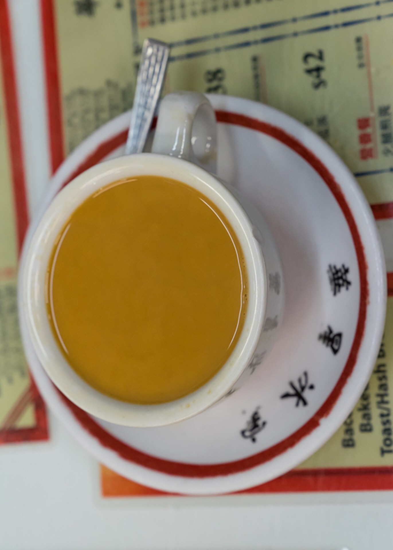 华星冰室在香港开了很多家,旺角这家人最多,要排队。奶茶没兰芳园的浓,校长多士还可以