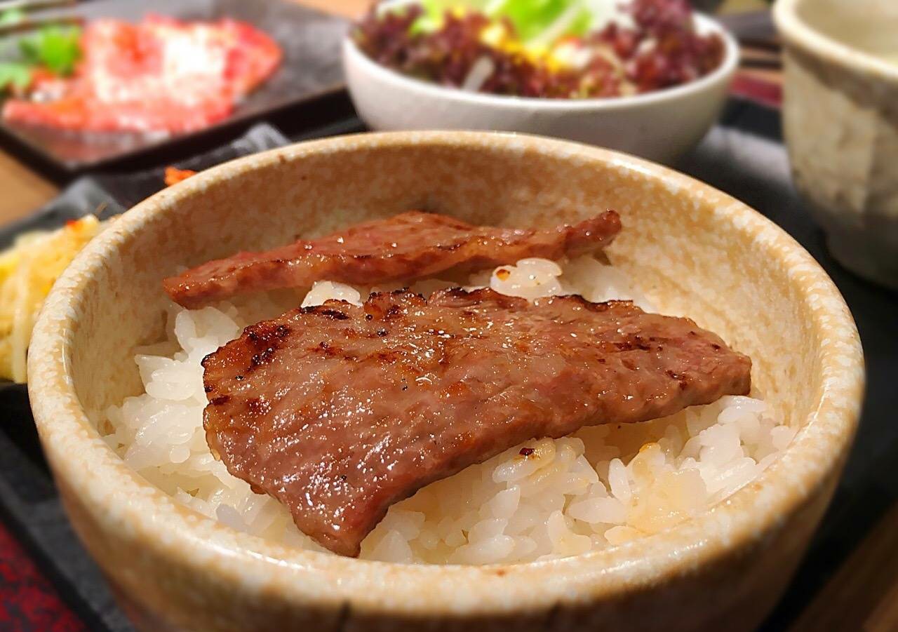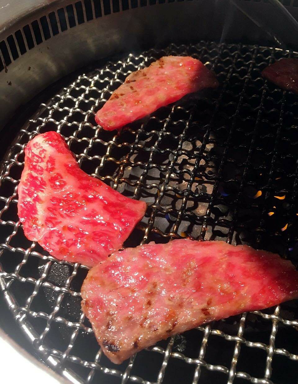 炭火烤的和牛的脂肪被融化,咬一口嫩嫩的和牛还带着肉汁,搭配日本米饭就很好吃了