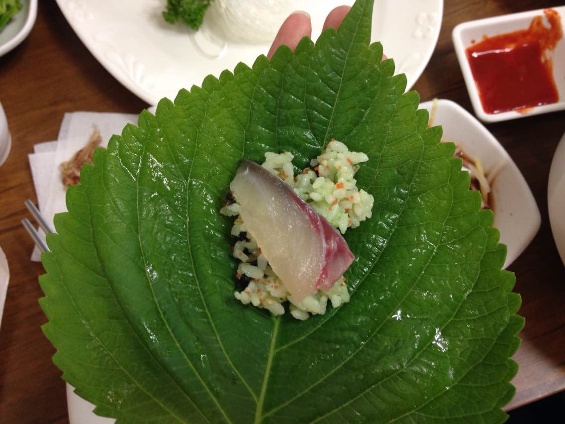 这家鲅鱼 刀鱼生鱼片店极力推荐 就在济州岛边上的牛岛,济州岛的特色鲅鱼生鱼片的吃法 芥末鱼子拌...这家鲅鱼 刀鱼生鱼片店极力推荐 就在济州岛边上的牛岛,济州岛的特色鲅鱼生鱼片的吃法 芥末鱼子拌饭+芝麻叶+一片生鱼片+洋葱[色]然后就包好一起放到嘴里[偷笑]