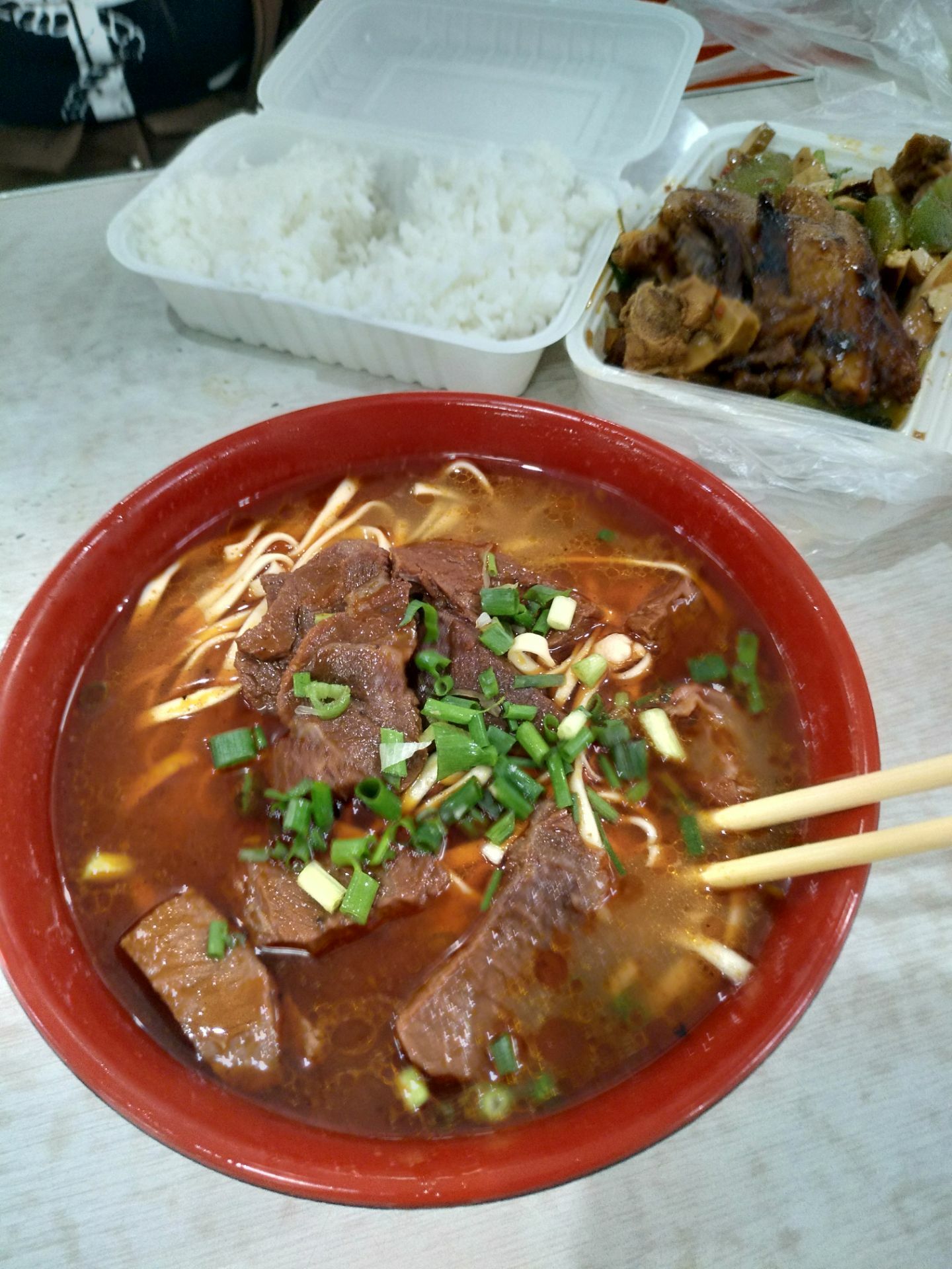 老武汉,好像开业十几年了,老店必有回头客,每天店里生意都很兴隆老武汉,好像开业十几年了,老店必有回头客,每天店里生意都很兴隆。早中晚三餐都做,这次是中午去的,点了一份牛肉粉,一份盒饭,都是十二元,还是盒饭划算,菜比较多,味道还不错。