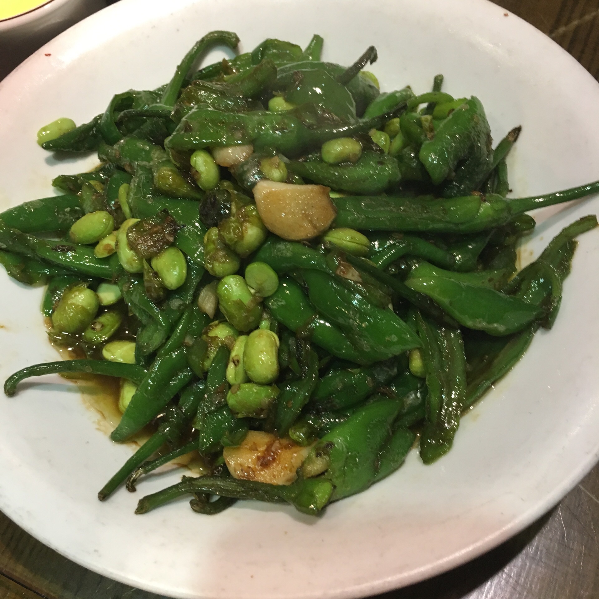 生煎包和辣椒很不错,比较好吃。牛肉味道还可以,不过比起名气差了些,看起来很辣,吃起来还可以