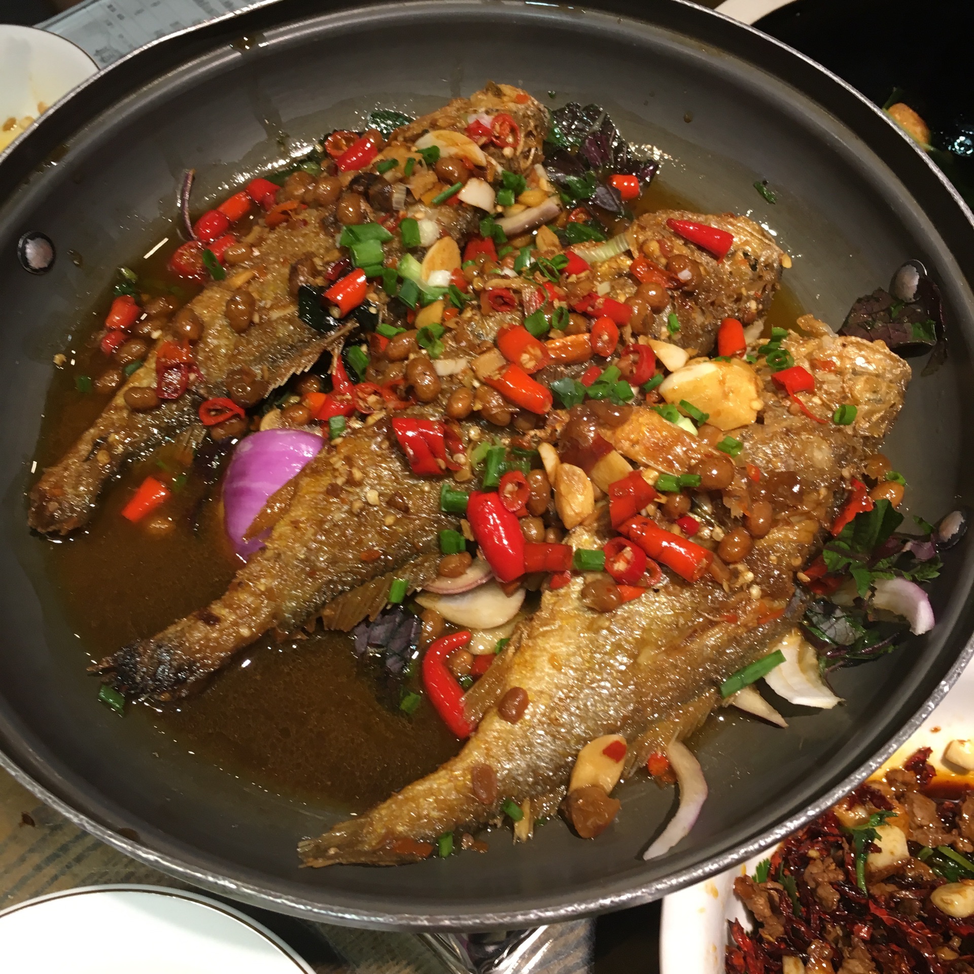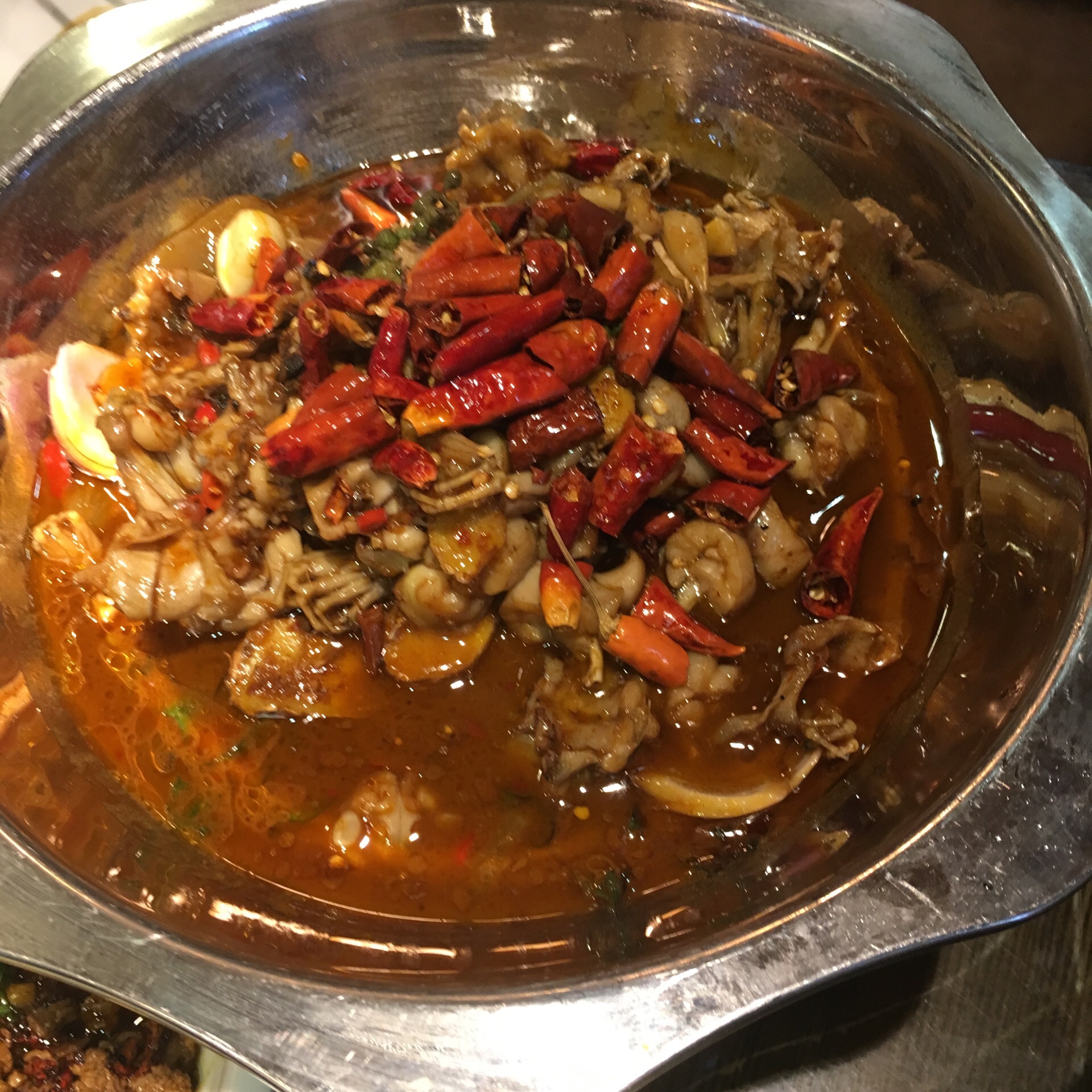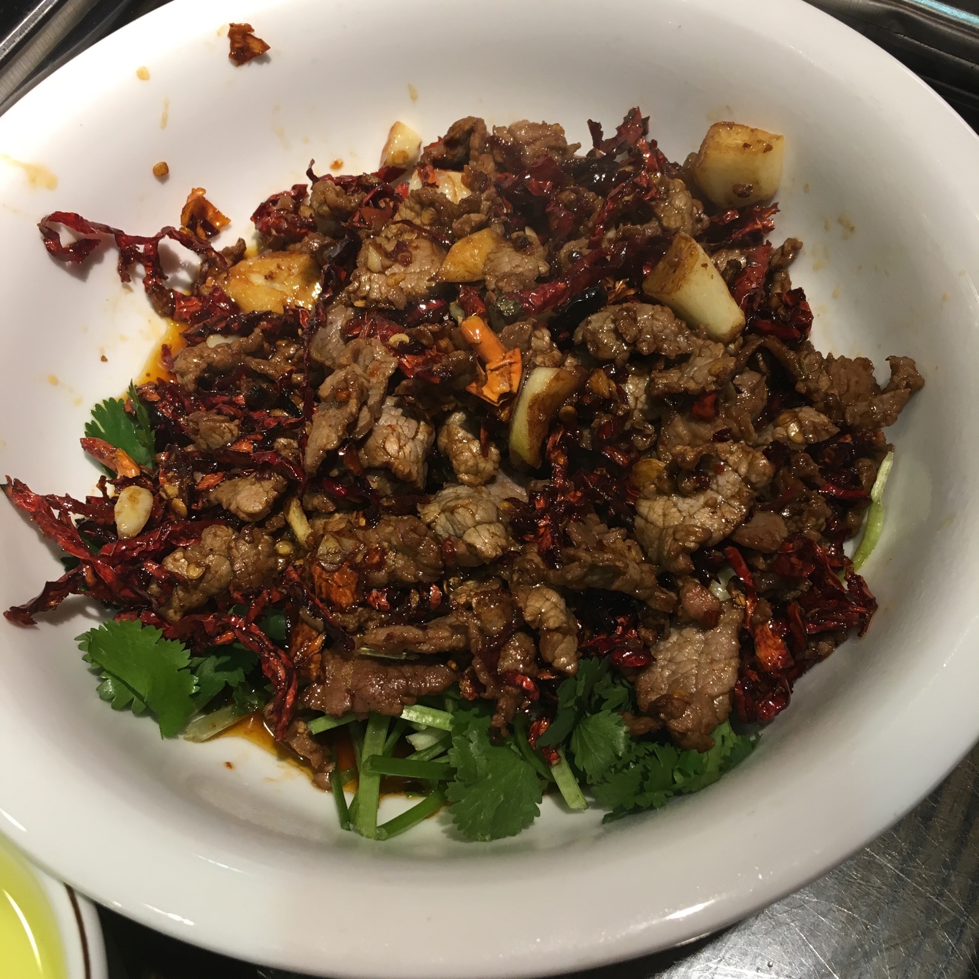 5月12日母亲节,虽然下着大雨,还是决定家里聚下餐,就近到了这家店。照例点了牛蛙,发现居然有了十八秒爆炒牛肉,早闻大名,很久没出过了,赶紧点了,另外又点了干锅小黄鱼,炒辣椒等等,最后看到生煎包,来了一打。牛肉味道还可以,不过比起名气差了些,看起来很辣,吃起来还可以。生煎包和辣椒很不错,比较好吃。