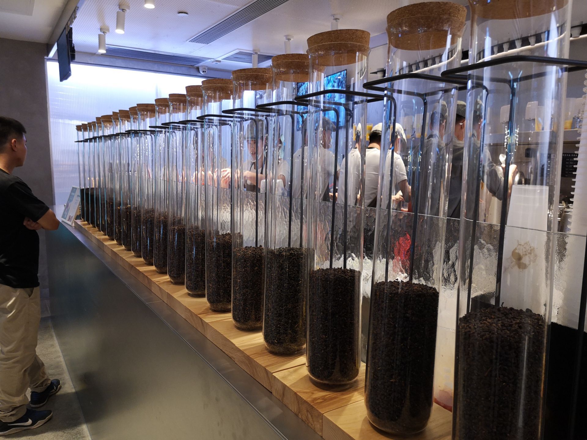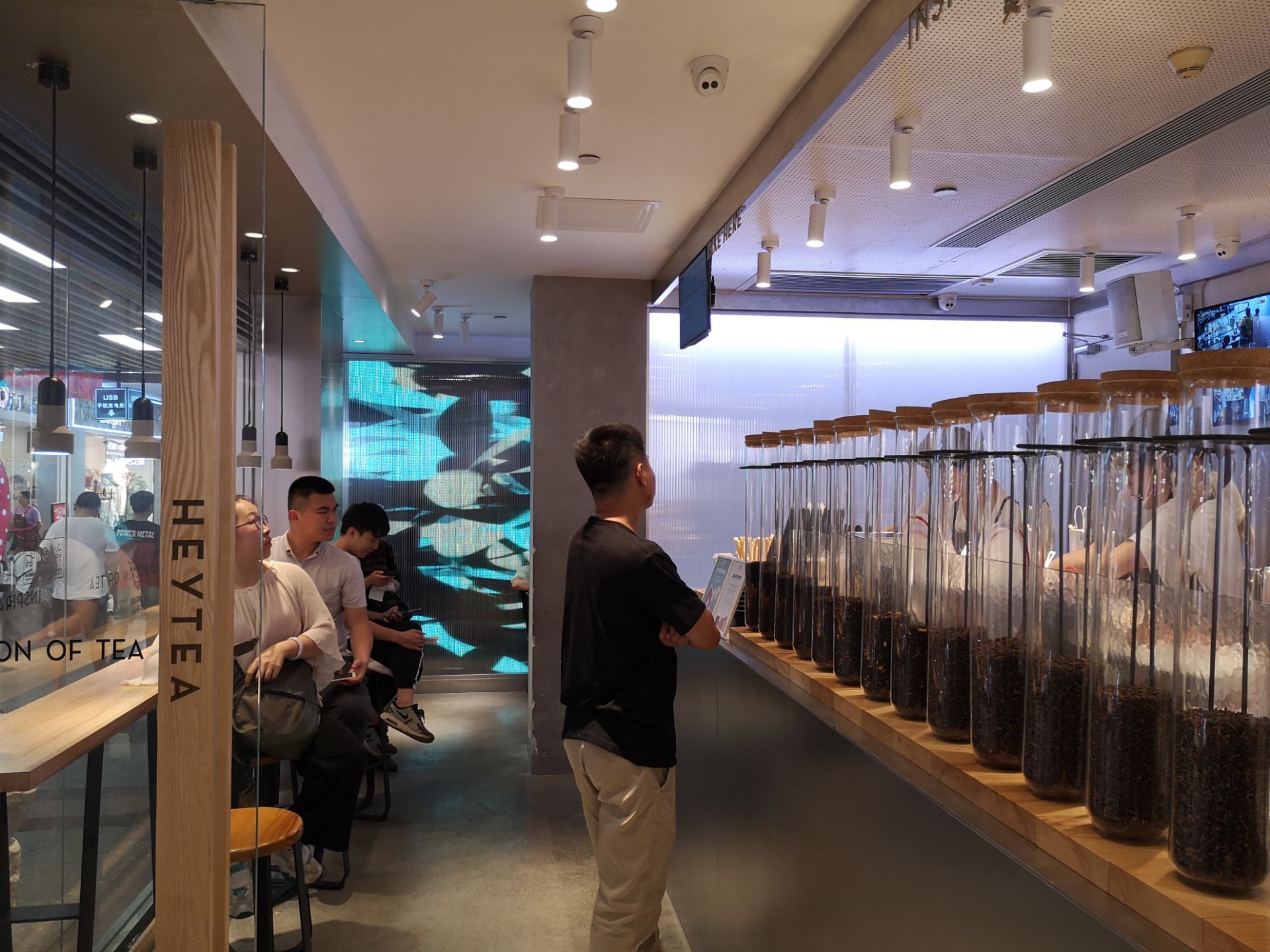 这家喜茶就在百姓广场东区的一楼过道上面,离肯德基并不是特别的远,所以很容易找的。 店铺并不是特别的大位置,只有狭窄的几个位置,但是里面就坐满了人,也站满了人,买东西要等还是比较久的。 尝试了一下,这边的bobo奶茶比较喜欢吃这边的,Bobo珍珠。 另外两杯迷你的喜茶也是挺有意思的,尤其是瓶子,挺可爱,还有一个纪念品的小袋子。