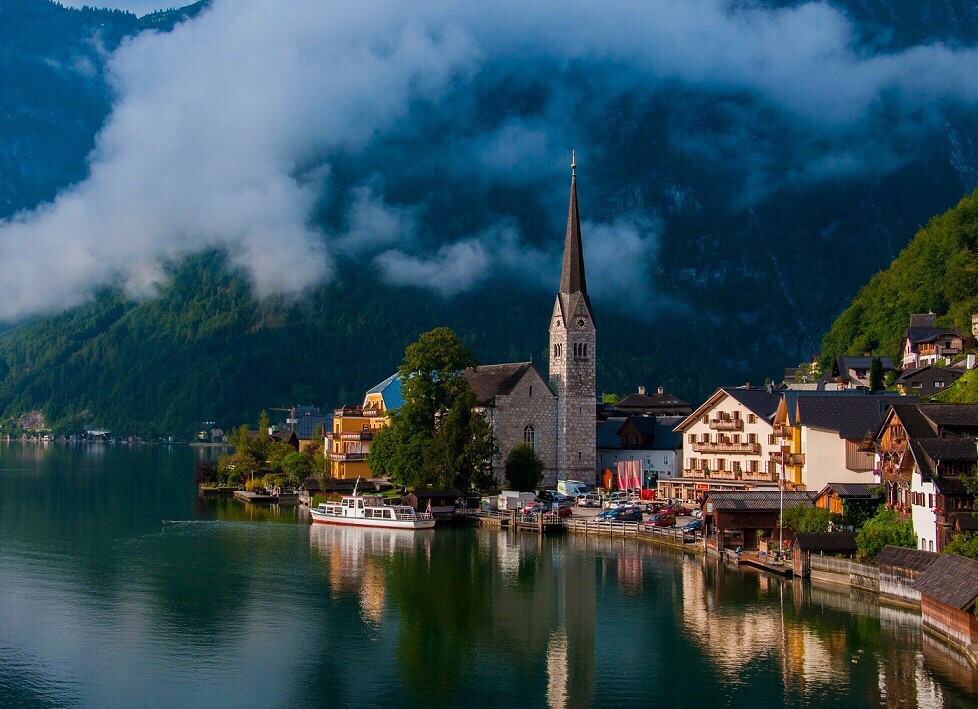 乘渡船从哈尔施塔特港往来对岸火车站的途中风景很美。景色太好了,遗憾的是标注都是用的德文
