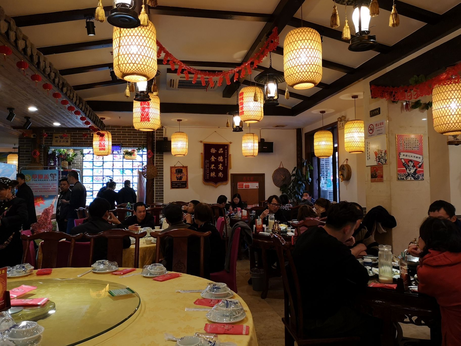 不知道是不是顾村公园活动丰富的缘故,餐厅生意特别好,特别是周末~ [服务]客人多的时候,服务乱哄哄的,都没人安排座位,分工不合理~ [环境]室内环境一般,桌距很近,有点拥挤~点菜区域也不算宽敞~ 菜品味道不错的,|手工豆皮^是特色,推荐~ 价格不贵,味道也ok,服务更规范就更佳了~