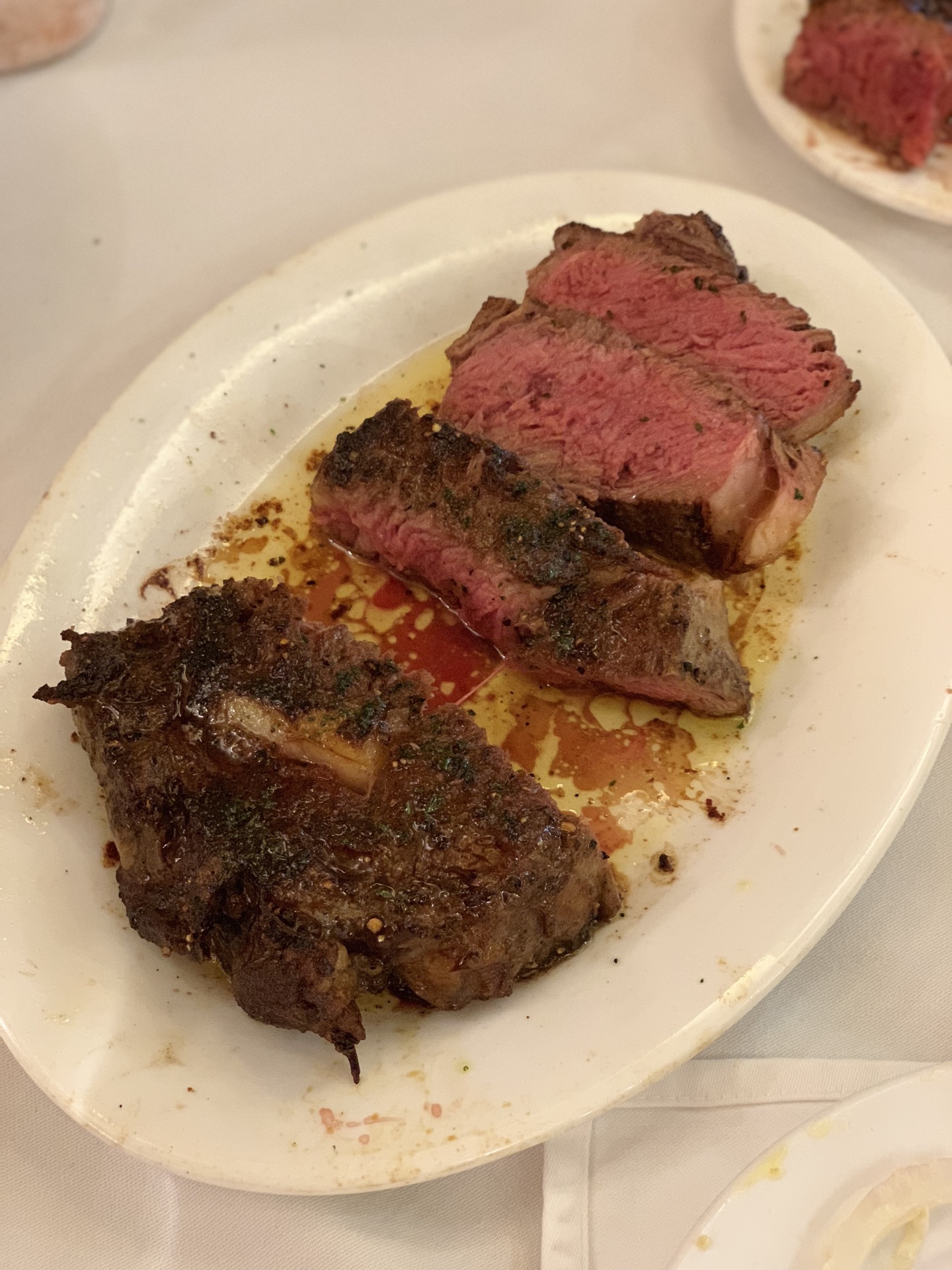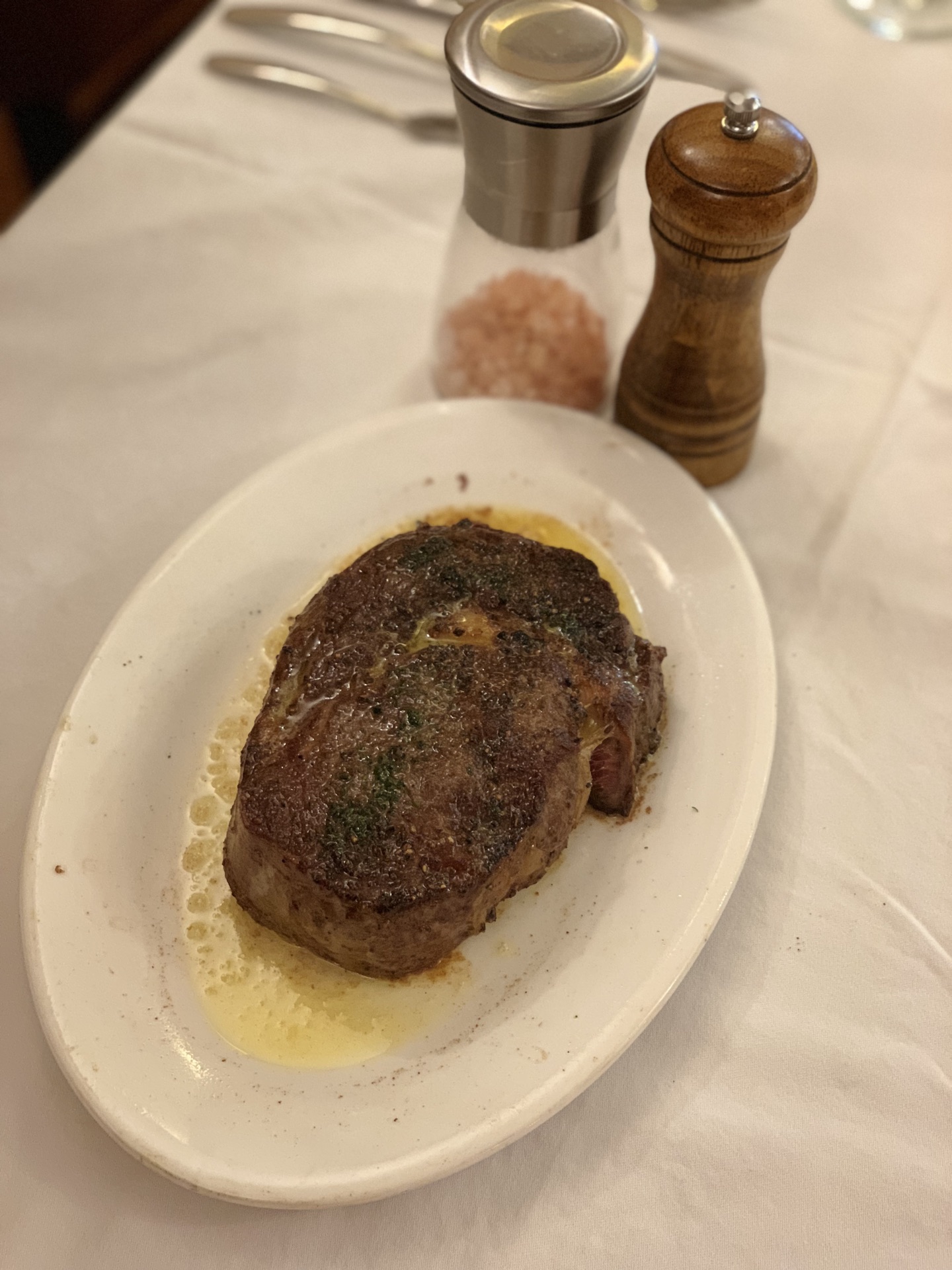 一家在成都开了好几年的牛排店,在我的收藏夹里也默默的躺了很久了,一直想找机会去试试。 [位置]这家在桐梓林南路这边,作为成都比较高档的一个社区,隐藏着很多知名或者特色的小店,所以能来一次还是很棒的啦! [环境]美国乡村风味的装修,没有太多花哨的装修,简单直接,看上去有一点朴素的味道!不管上墙上的照片,还是餐具的摆设,又或是一些装饰物,在冥冥中透露着一点别致! 「干式熟成西冷牛排」这家主推的干式熟成牛排,在成都不算是太多吧。将牛排存放至少7~24天风干,这个过程使牛肉颜色变深,牛肉的结蒂组织软化,同时又由于部分水分的蒸发而令牛肉的肉味更醇厚。牛排分切、入口,整个嫩度是接近假嫩的真嫩。软中有韧,柔中带弹,牙齿咬合时几乎没有明显的阻力。真的是太喜欢了…… 「烤番茄汤」本来对于番茄不是太喜爱。但作为开胃汤,感觉很不错,酸甜的味道,有点爽! 「浓情巧克力蛋糕」餐后甜品算是一大遗憾吧,先不说分量,味道上面的口感不是很舒适,甜度也搭配得不尽人意。 「薄切伊比利亚火腿」火腿肉是小惊艳,不过一定要下着红酒一起品鉴,那个味道,才是最巴适的! 「澳洲奔富干红葡萄酒」摇一摇,口感还不错,搭配西餐必不可少的选择!