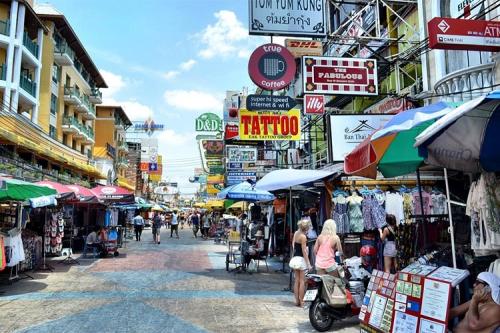 各种小吃摆满街道两旁,泰式按摩举着广告牌招揽生意,各式Bar霓虹闪烁