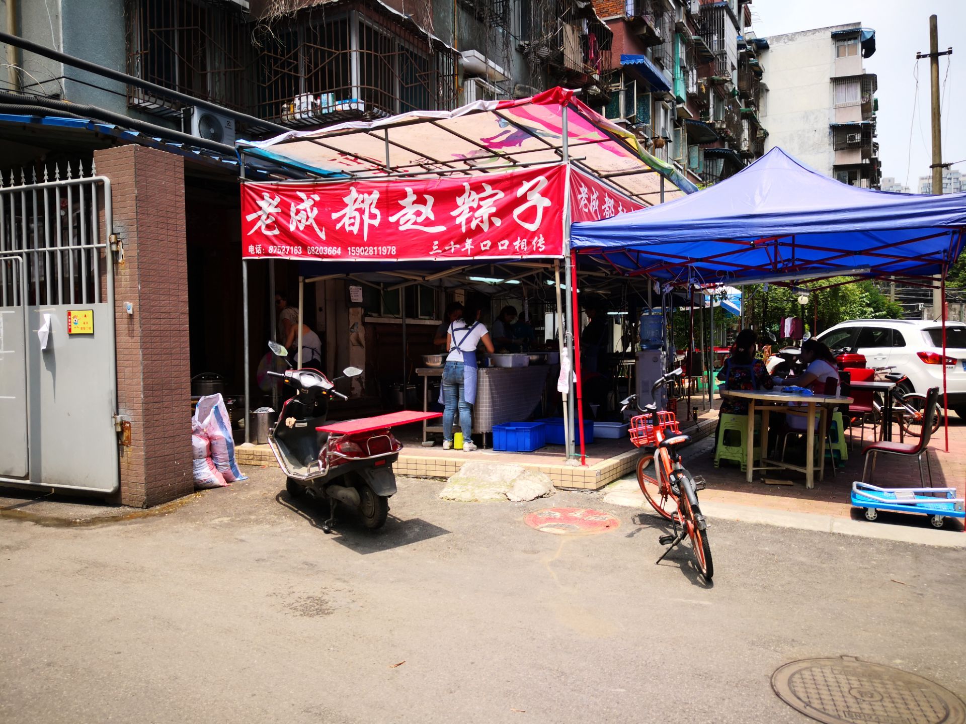 ...家赵粽子,一家五嫂粽子 感觉生意都很好哦,相对来说五嫂更占地理优势,赵粽子还要往小区里面走点点