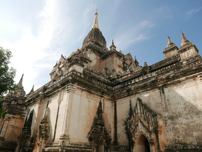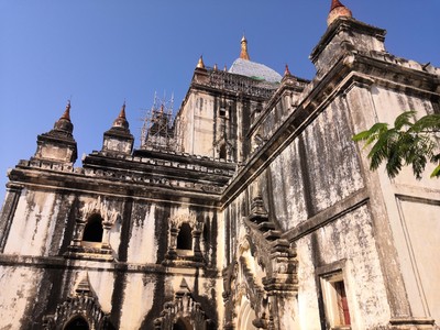 素威库吉佛塔,也译作瑞古吉佛塔,位于他冰瑜塔以北200米处的城墙内,听说建于13世纪,内有金洞,但去的时候基本上所有佛塔都不让攀爬,只能外观和佛堂看看。从外观和内部雕刻上看,素威库吉与城墙外各个平原上佛塔的差别不大,玉米棒状的尖塔有点类似于阿南达佛塔,但是比阿南达小很多,规模上不及其他的佛塔