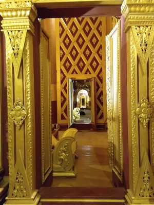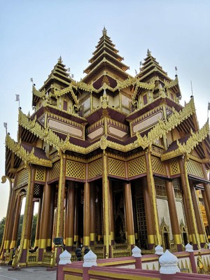 位于蒲甘平原西北角,在真正皇宫旧址的对面,于2008年开始对外开放。建筑本身是模仿原来的宫殿,但并未太多保留原有皇宫建筑的风格,但其仍是平原上蒲甘王国的代言人,距离阿南达寺最近大约500米,距离良乌镇约8公里,这里不适用古城通票,需要另外买5000K的门票进入,晚上开放到8点左右,建议可以来看看夜景 金色宫殿在夕阳的照耀下格外炫目,它是蒲甘国王阿奴律陀金色宫殿的仿制品。除建筑本身,可供参观的内容很少。