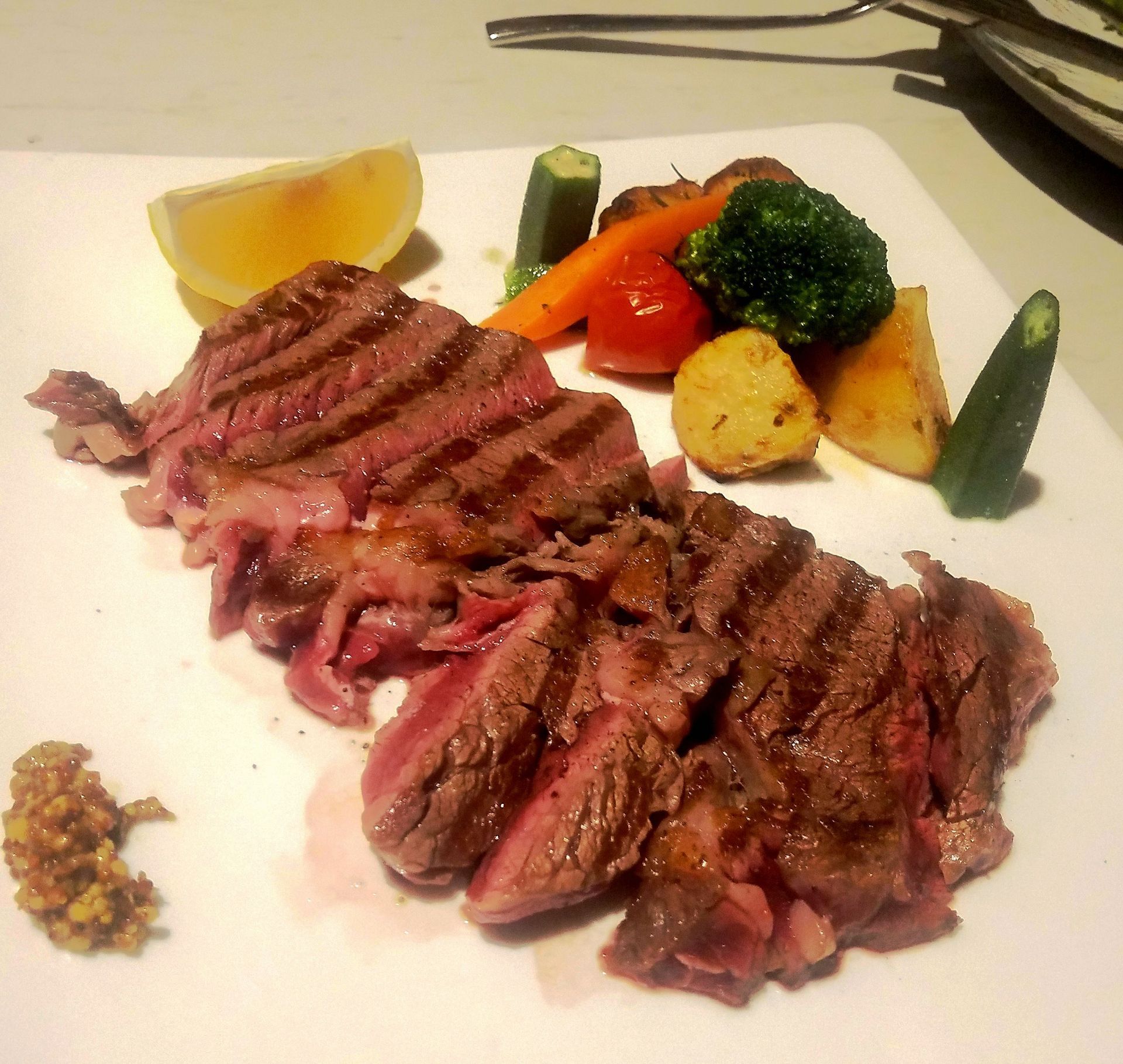 ...好 扒澳洲28天熟成M5肉眼牛排— 牛排放到桌上的同时,服务生随之拿来了盐和胡椒,牛排最佳拍档